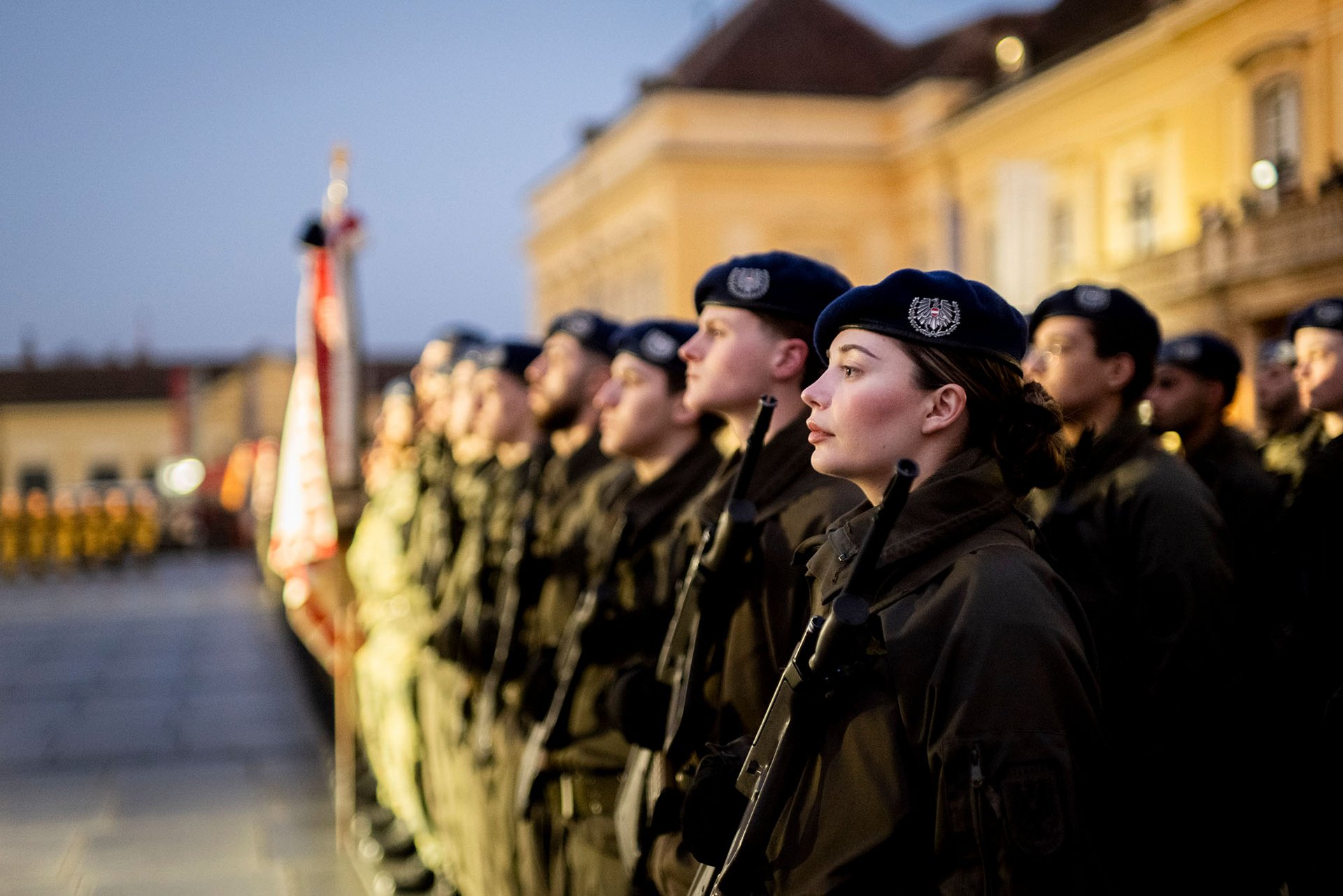 Die jungen Rekruten legten ihr Treuegelöbnis ab und gelobten damit ihr Heimatland, die Republik Österreich, im Ernstfall auch mit der Waffe zu verteidigen.