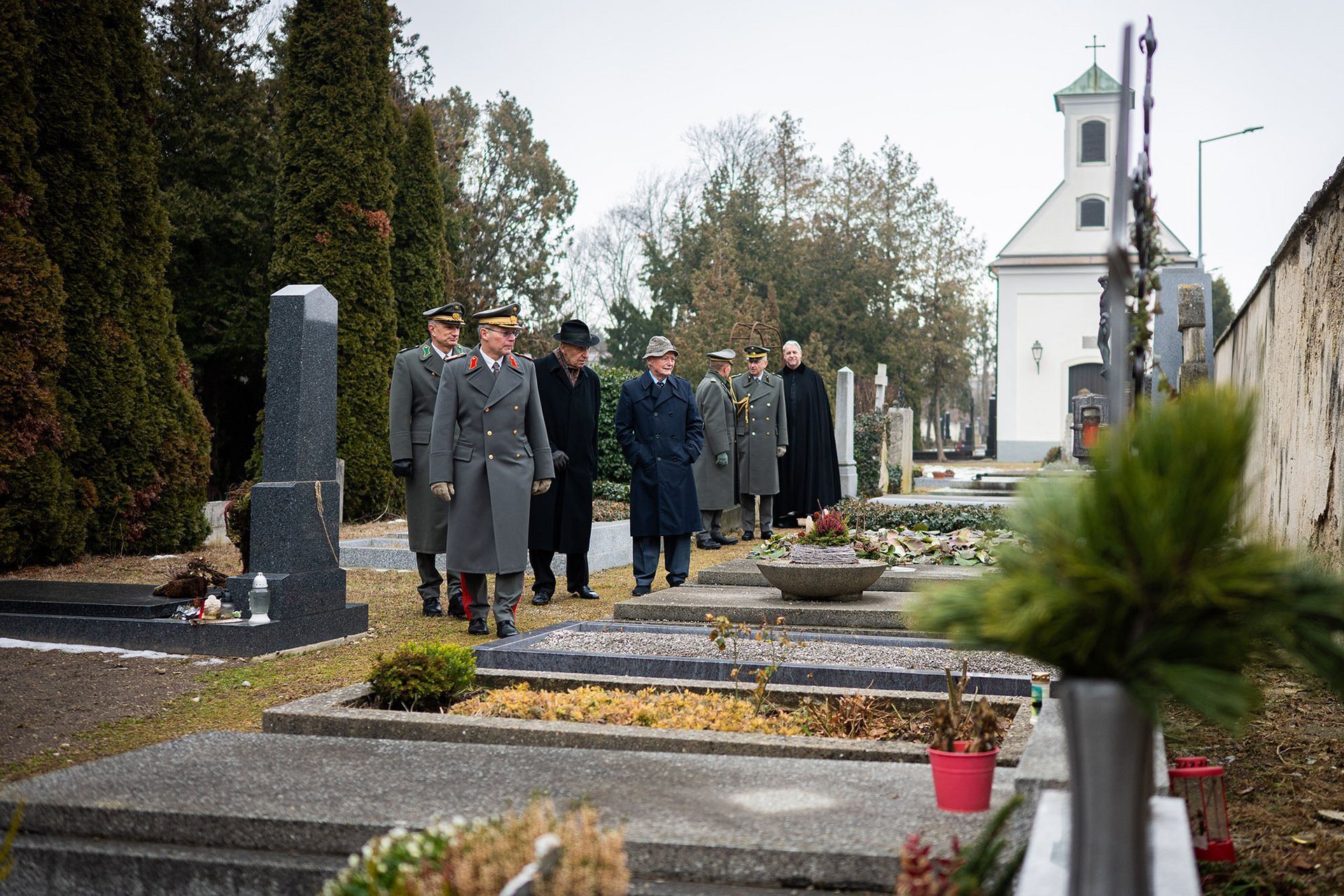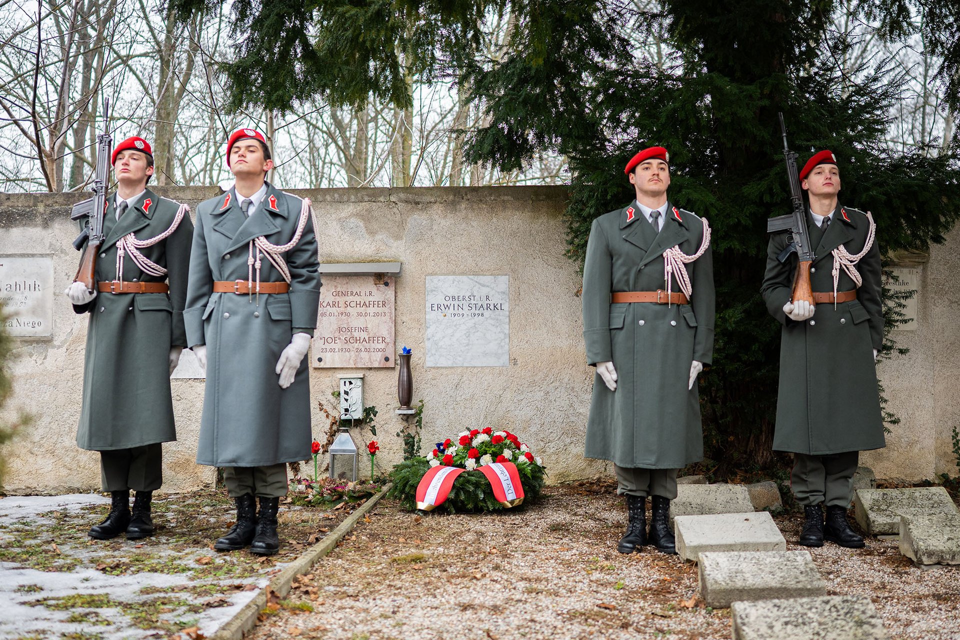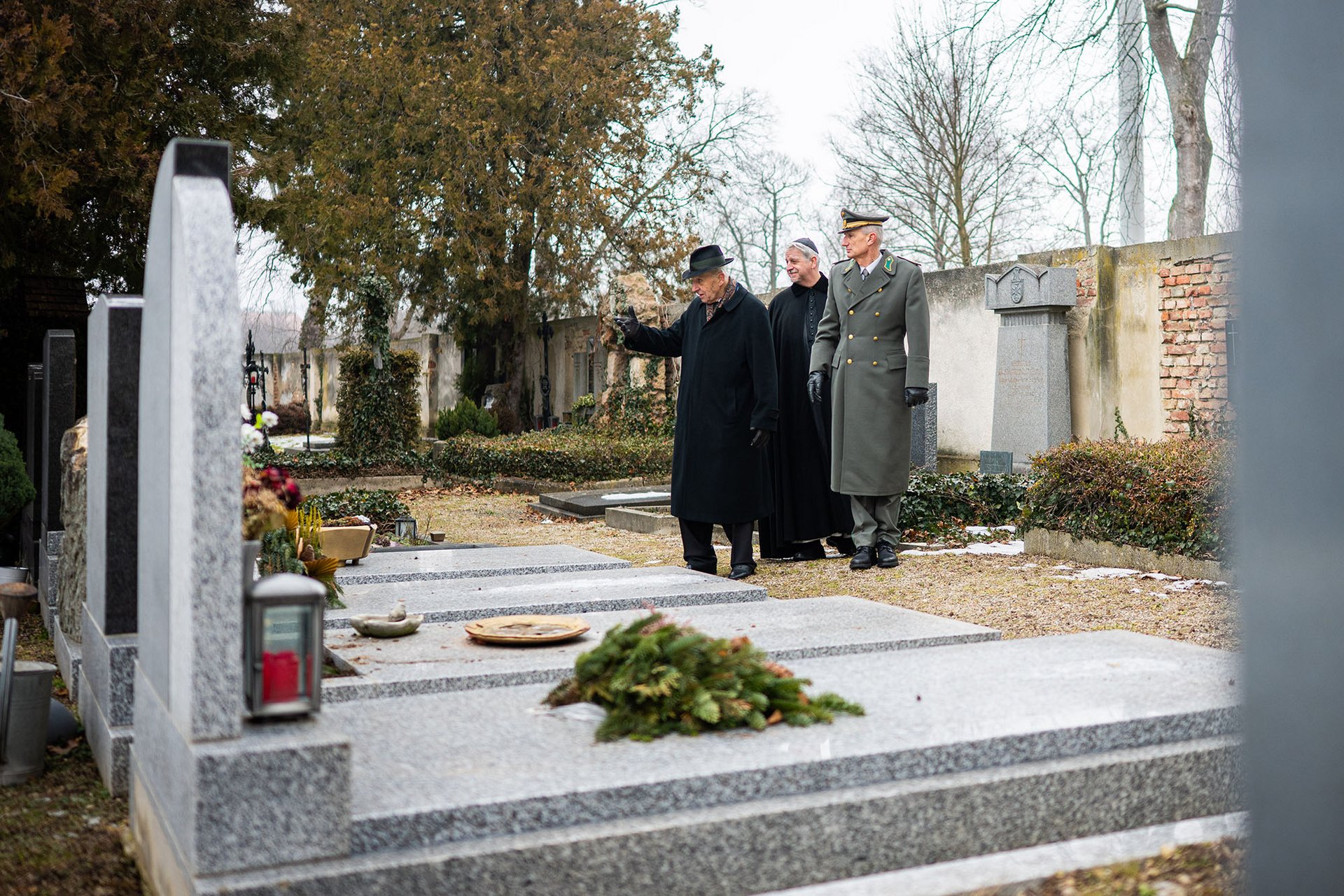 Im Anschluss daran ging es auf den Akademiefriedhof, wo bei der letzten Ruhestätte des damaligen Abteilungskommandanten, Major Erwin Starkl, ein Kranz niedergelegt wurde.