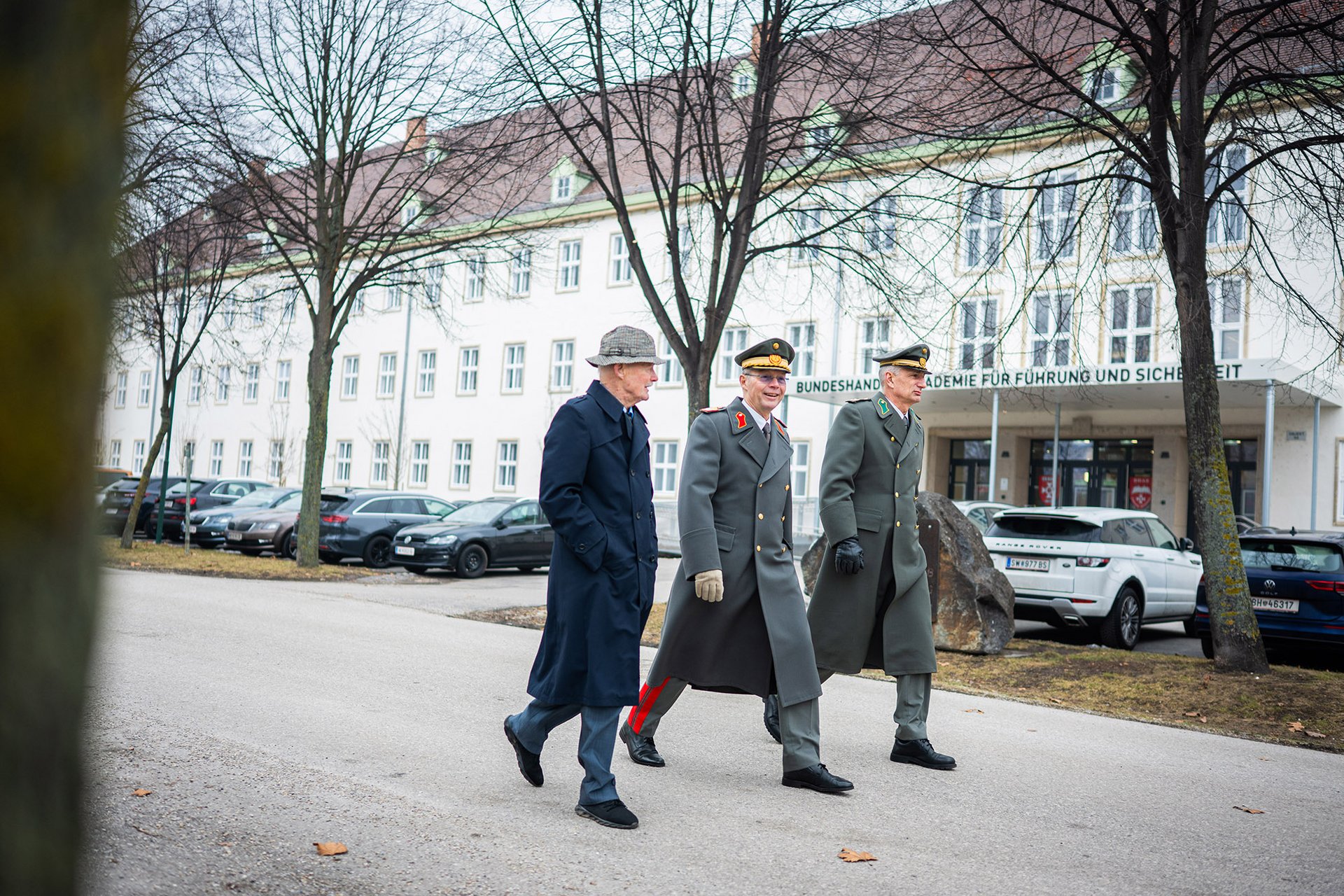 Zwei von den noch vier lebenden Angehörigen des ersten Ausmusterungsjahrganges der nach dem 2. Weltkrieg und dem Ende der Besatzungszeit wiedererstandenen Militärakademie kamen am Dienstag, dem 3. Februar 2026, nach Wiener Neustadt, um des 70. Jahrestages ihrer Ausmusterung zu gedenken.