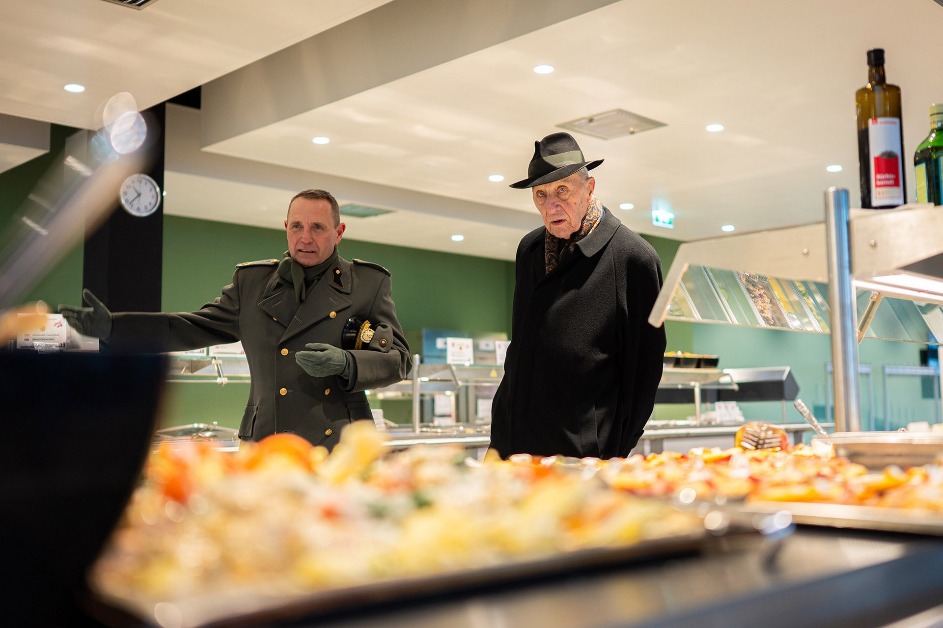 Im Anschluss daran ging es noch nach Wien in die Maria-Theresien-Kaserne, wo natürlich ein Blick in den Turnsaal, der Ort der Ausmusterung vor 70 Jahren, nicht fehlen durfte.