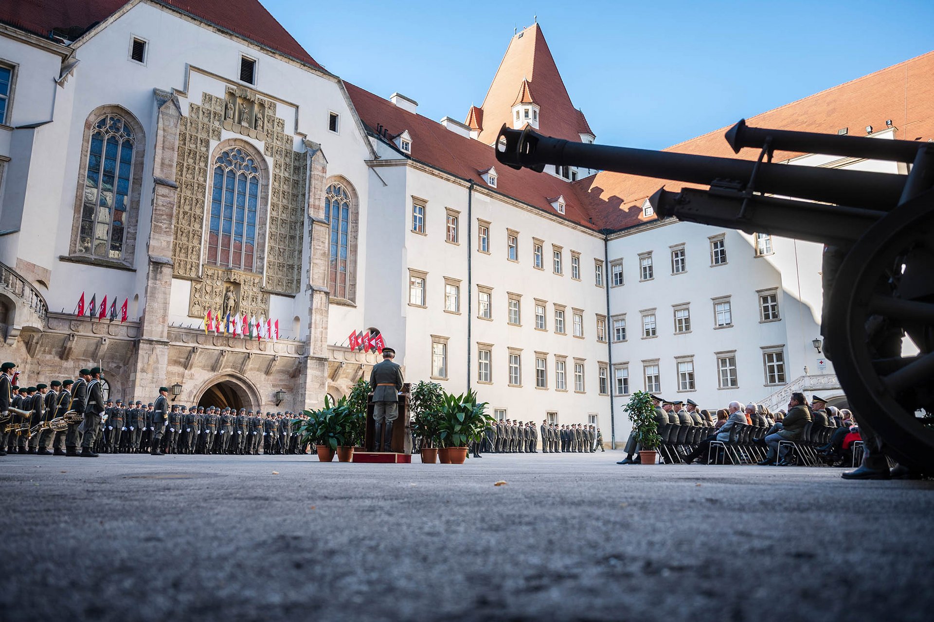 Am Mittwoch, dem 29. Oktober 2025, fand im Burghof in einem sehr emotionalen und durch die Militärmusik Burgenland musikalisch umrahmten Festakt die Verabschiedung in den Ruhestand des langjährigen Kommandanten des Akademikerbataillons, Oberst Gerhard Fleischmann, und die Übergabe des Kommandos über das Akademikerbataillon an seinen Nachfolger, Oberst Markus Hornof, statt.