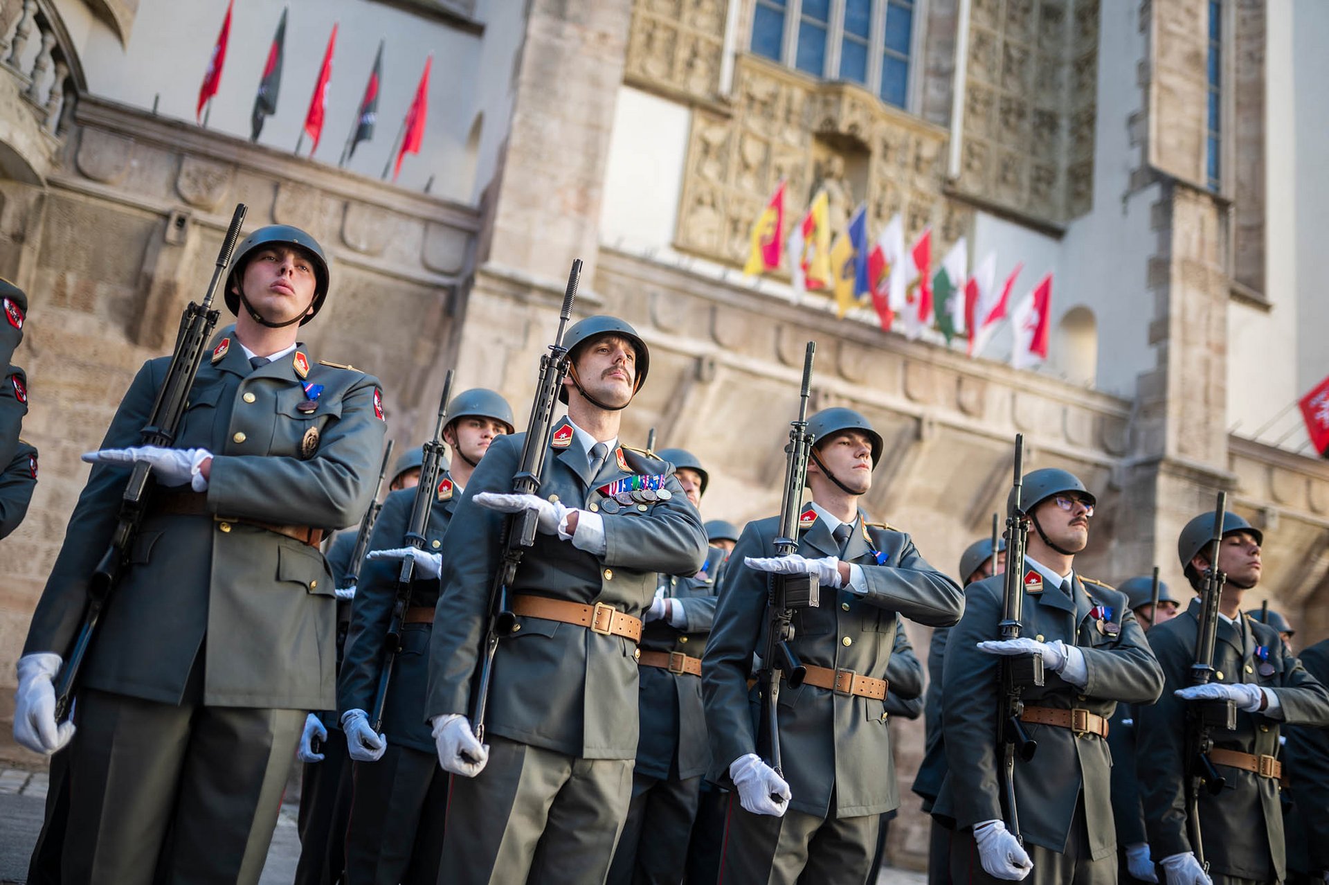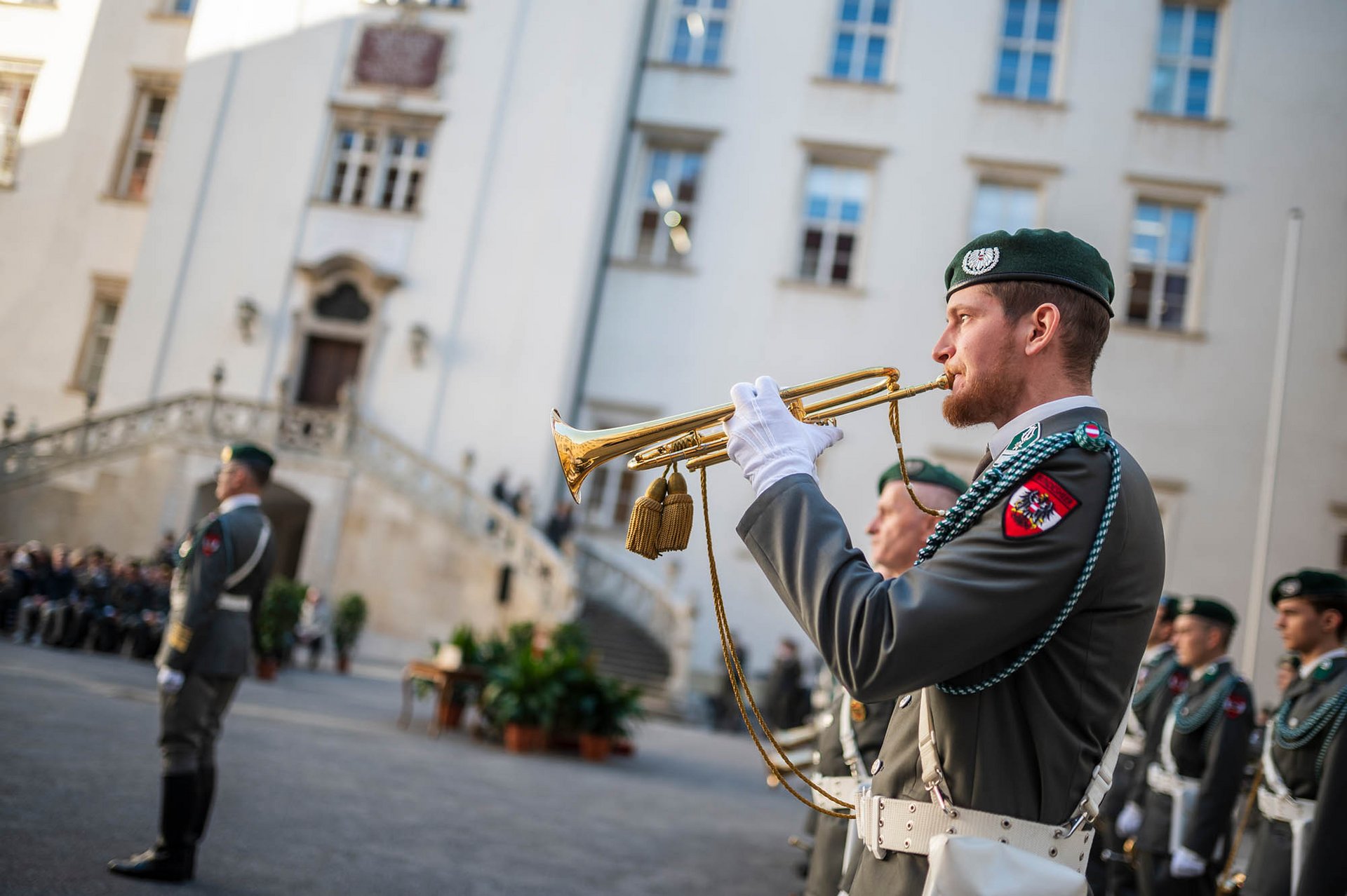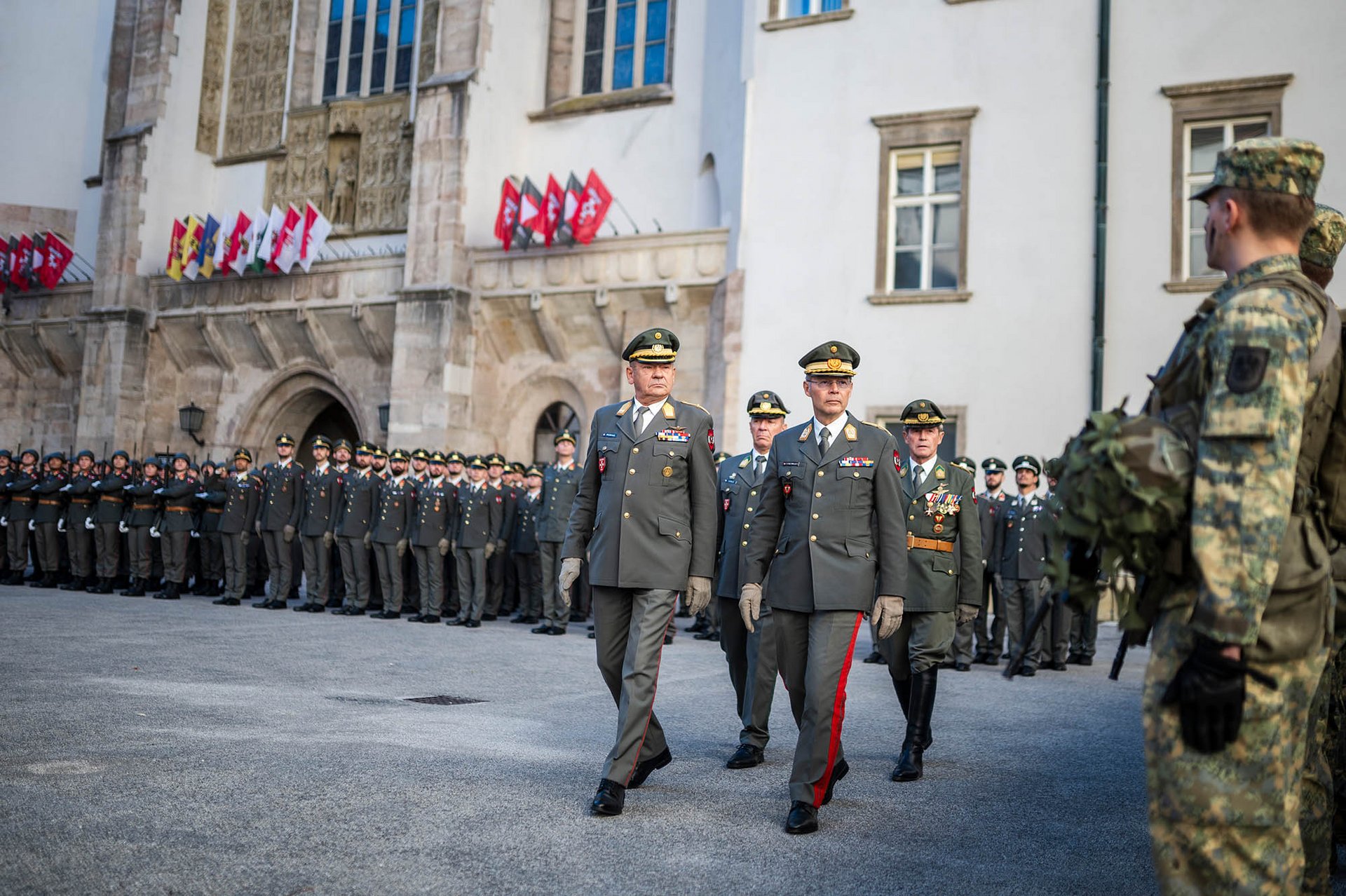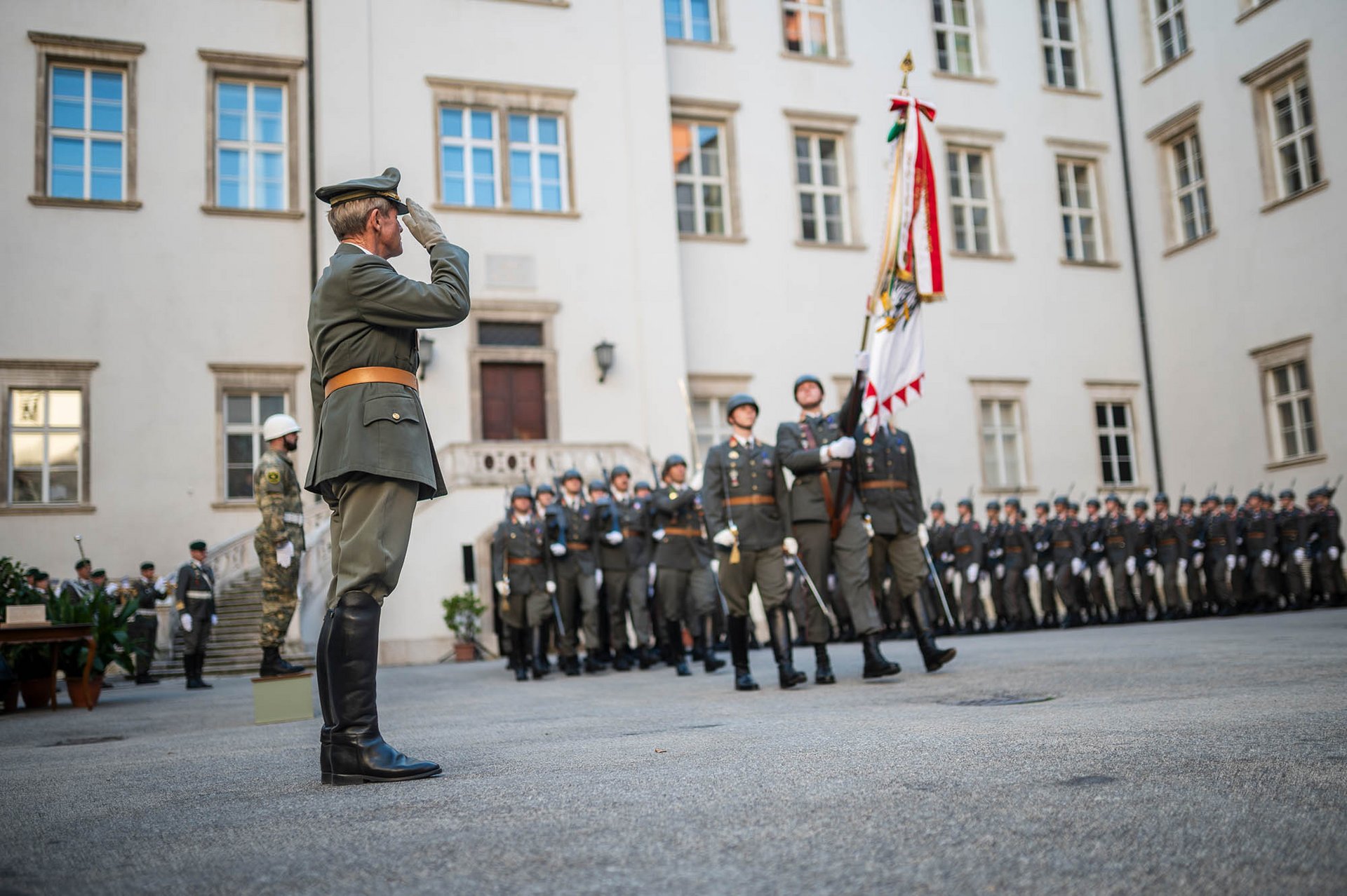 Zum Abschluss des Festaktes marschierte das Akademikerbataillon unter den Klängen des "Kaiserjäger-Marsches" aus dem Burghof aus und defilierte dabei ein letztes Mal vor ihrem scheidenden Kommandanten - ein Moment großer Emotion für einen wahren Kommandanten.