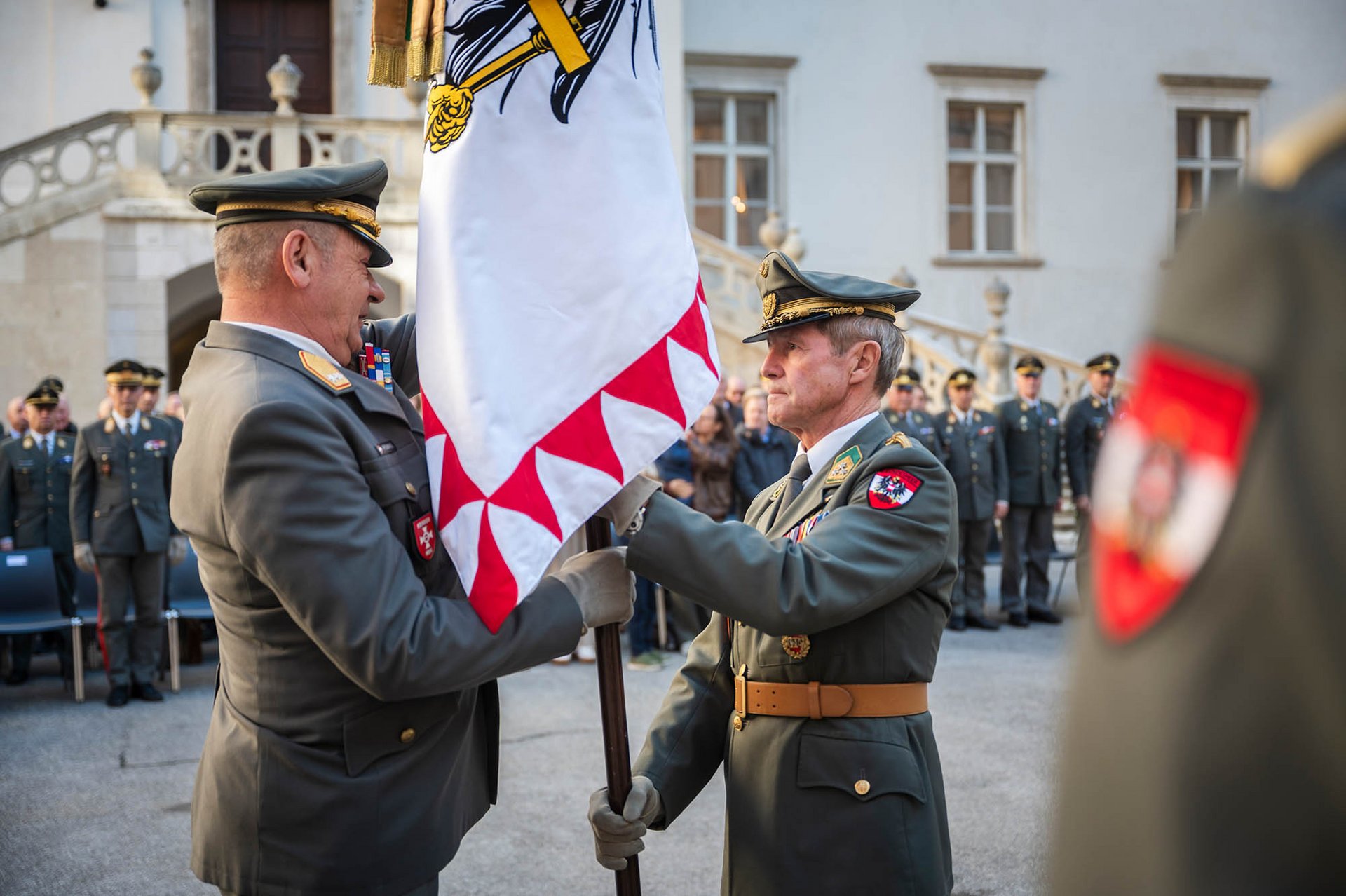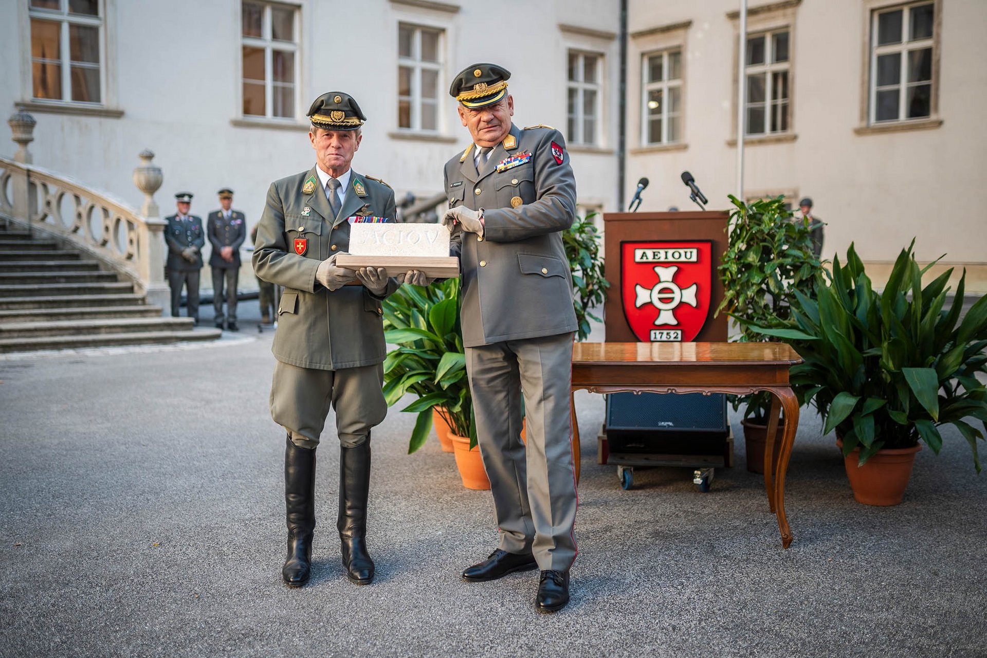 Gleichzeitig dankte Generalmajor Pronhagl seinem Jahrgangskameraden Oberst Fleischmann für den erbrachten Einsatz und wünschte Oberst Hornof alles Gute für die neue, verantwortungsvolle Aufgabe.
