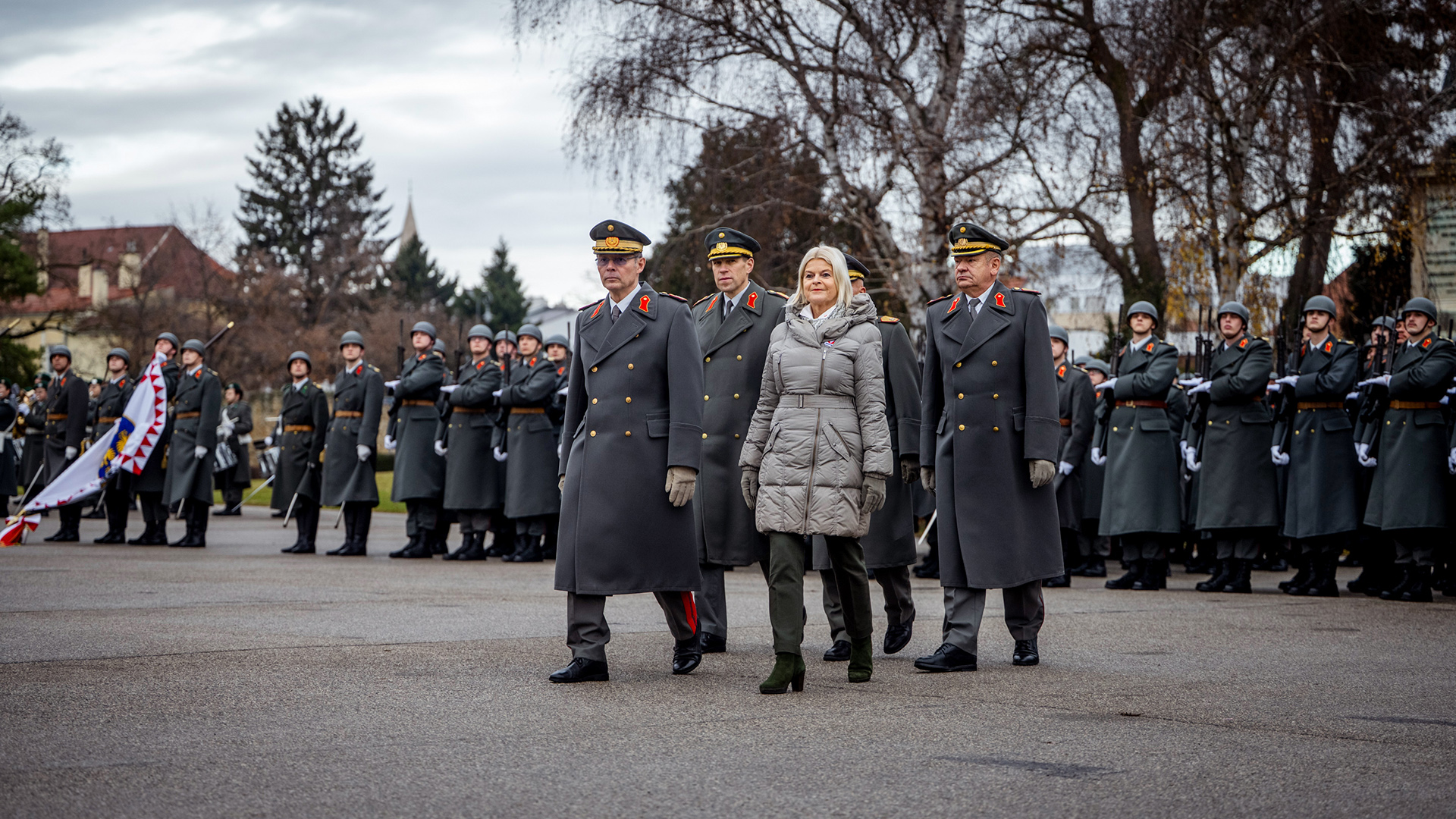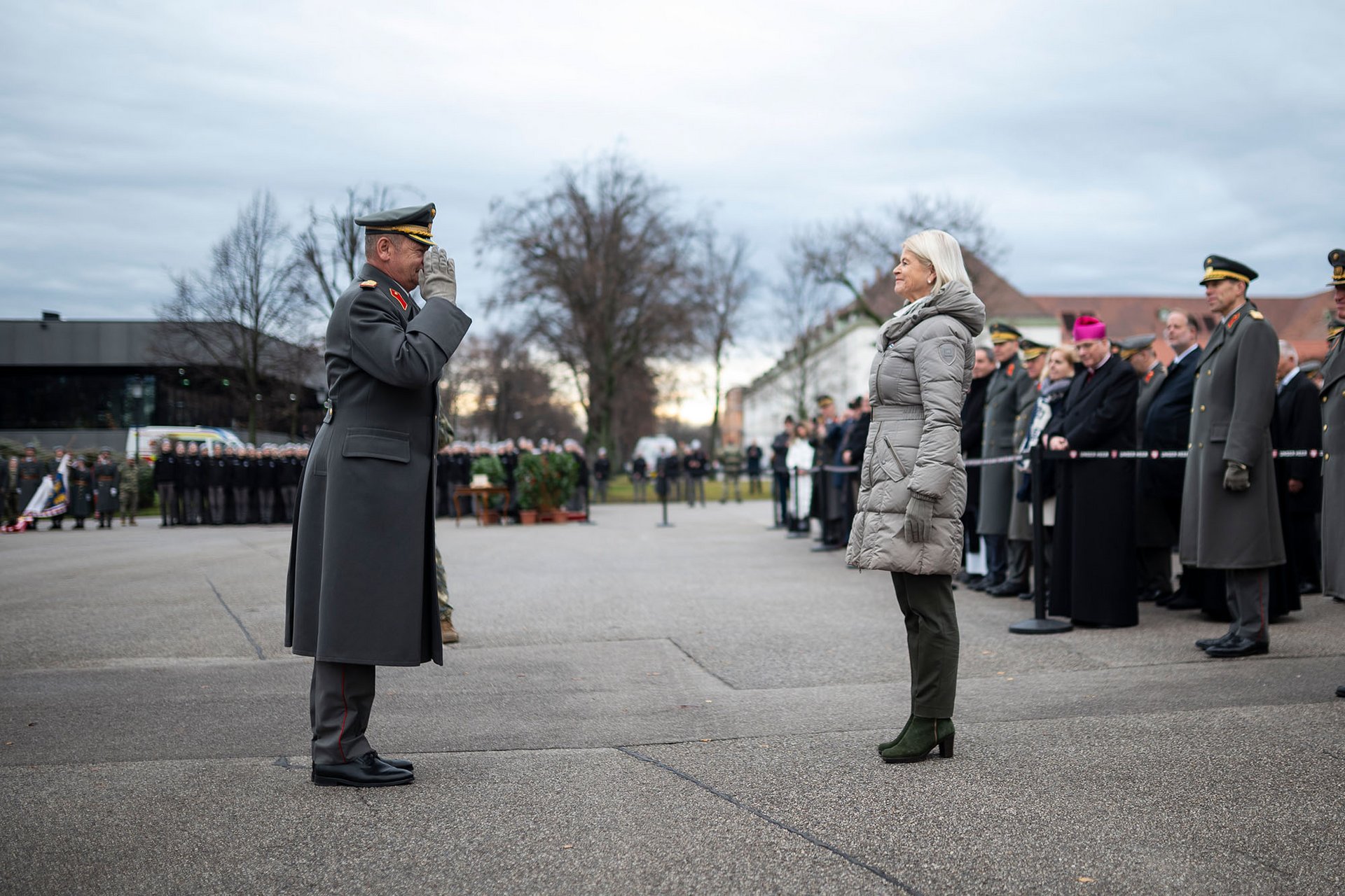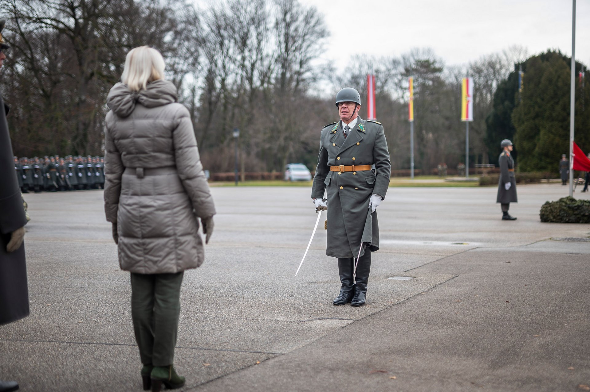 Verteidigungsministerin Klaudia Tanner sieht den neuen Kommandanten als jemanden, der „…unter Bewahrung dessen, was notwendig ist, die MilAk in neue Zeiten führt”.