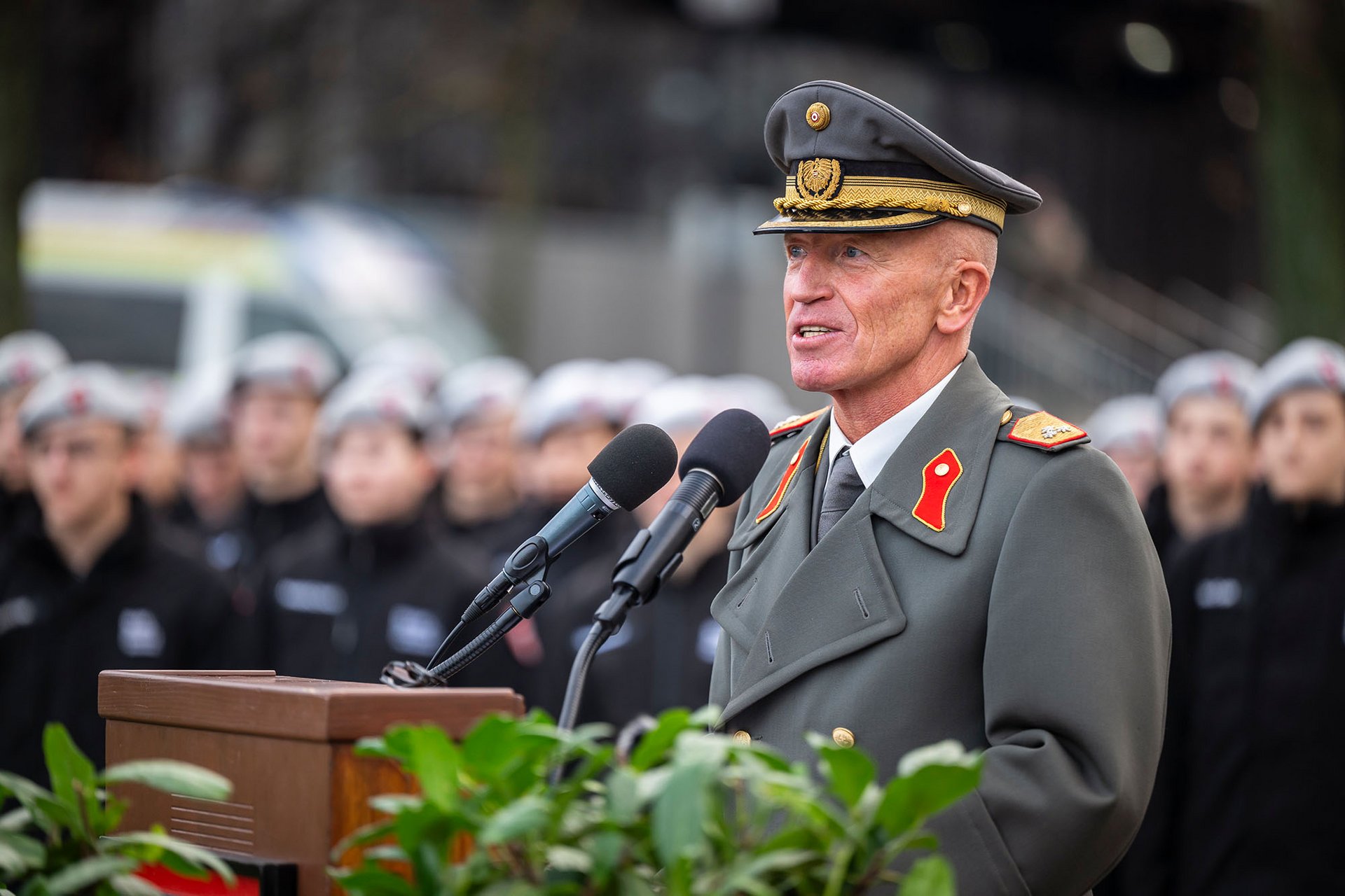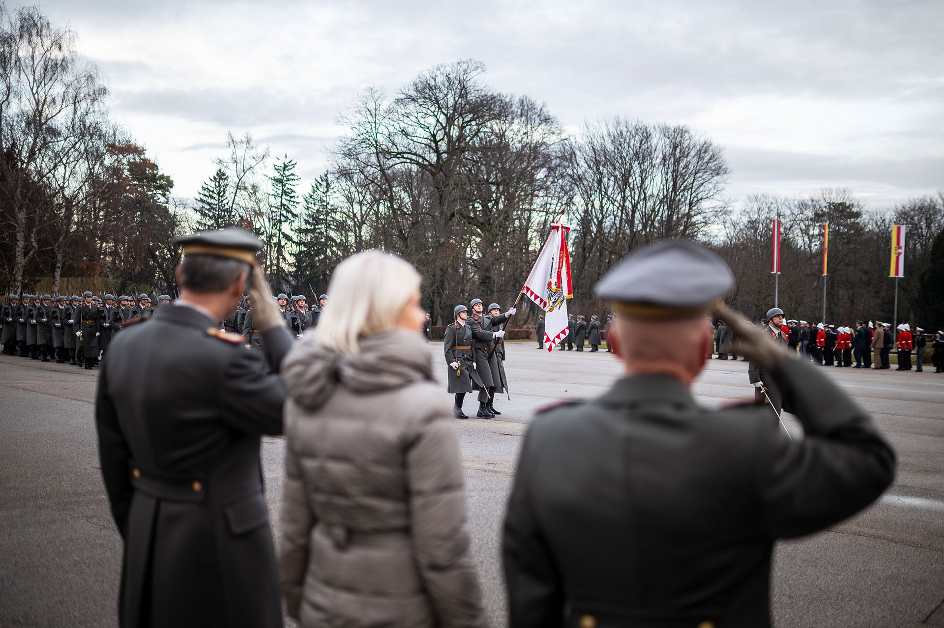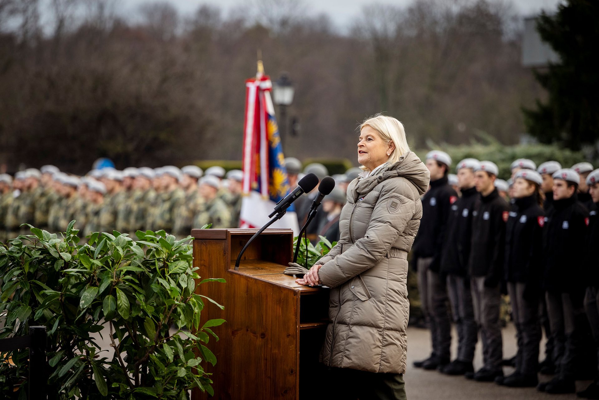 Verteidigungsministerin Klaudia Tanner sieht den neuen Kommandanten als jemanden, der „…unter Bewahrung dessen, was notwendig ist, die MilAk in neue Zeiten führt”.