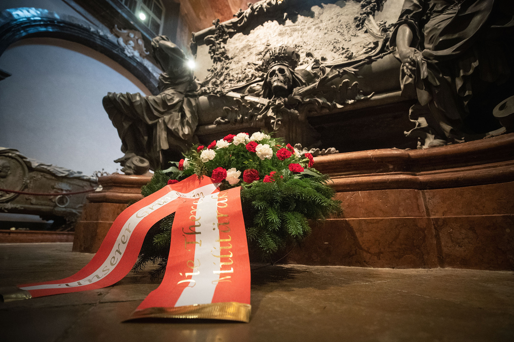 Der Gründerin - Kaiserin Maria Theresia - wurde deshalb mit einer Kranzniederlegung an ihrem Sarkopharg in der Kaisergruft gedacht. Neben dem Stellvertretenden Kommandanten der Militärakademie, Brigadier Franz Hollerer, erwiesen sowohl eine Abordnung der Vereinigung Alt-Neustadt als auch die Fähnriche des Jahrganges „Hauptmann Neusser“ der großen Staatsfrau die Ehre.