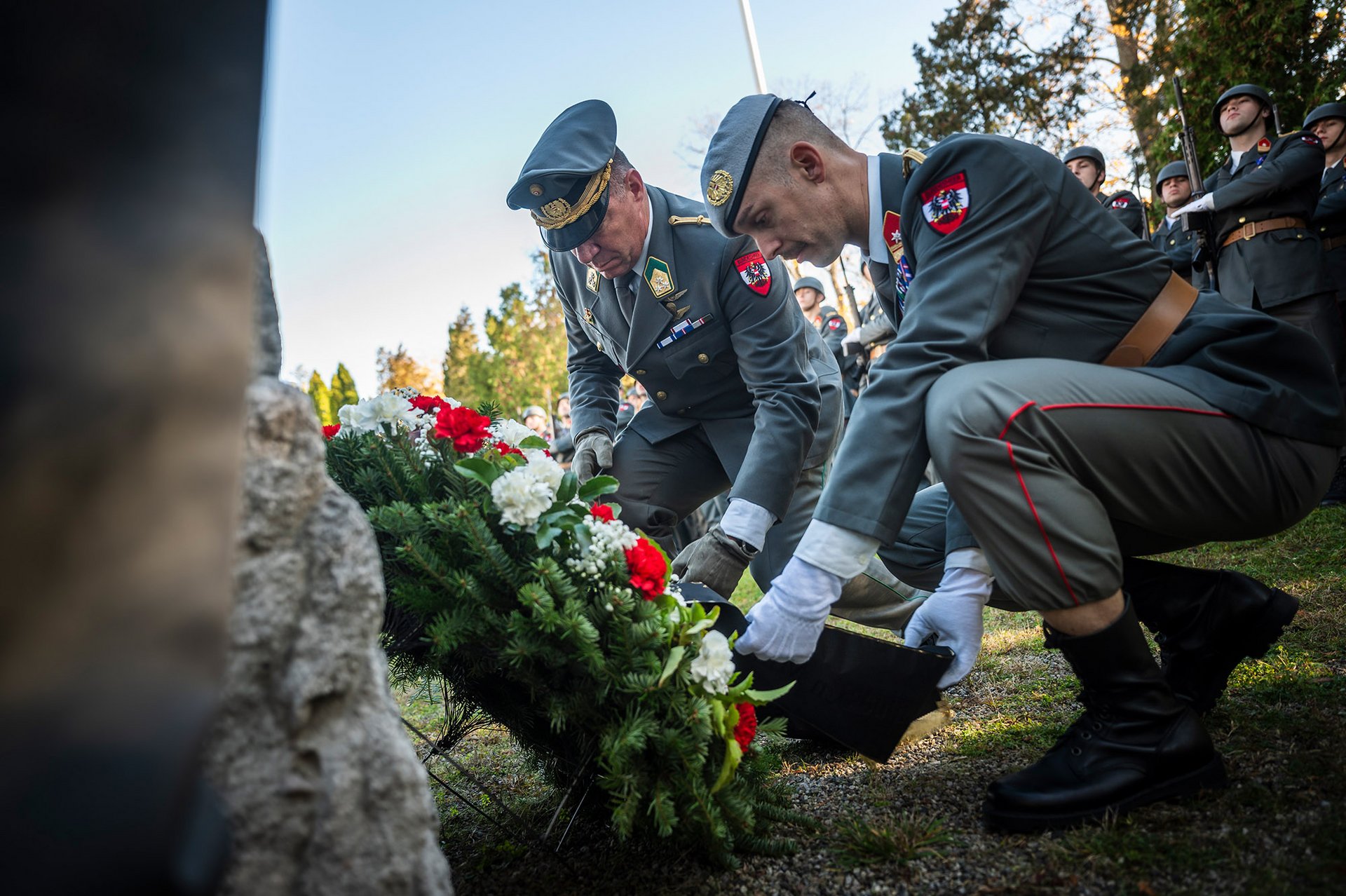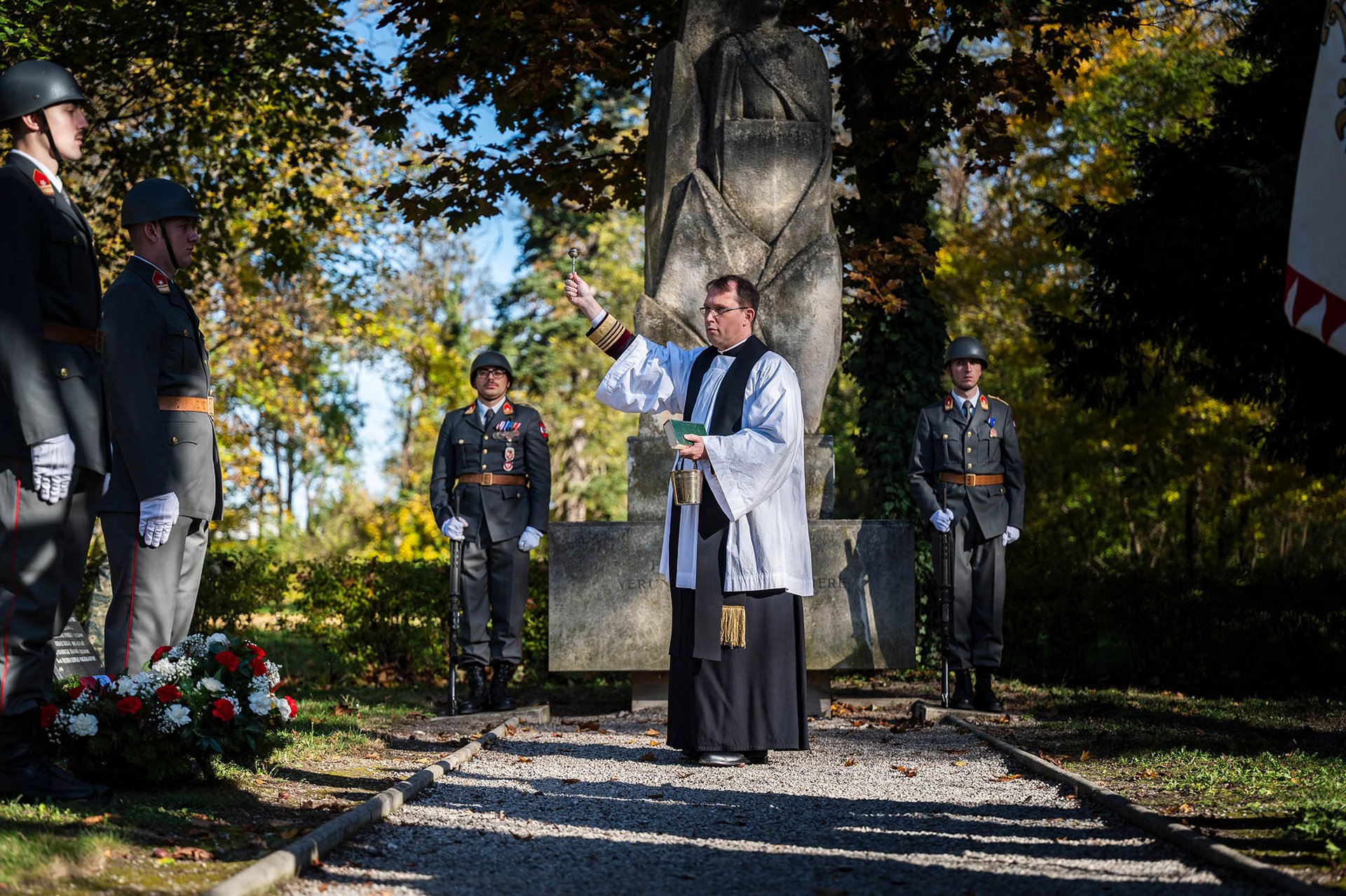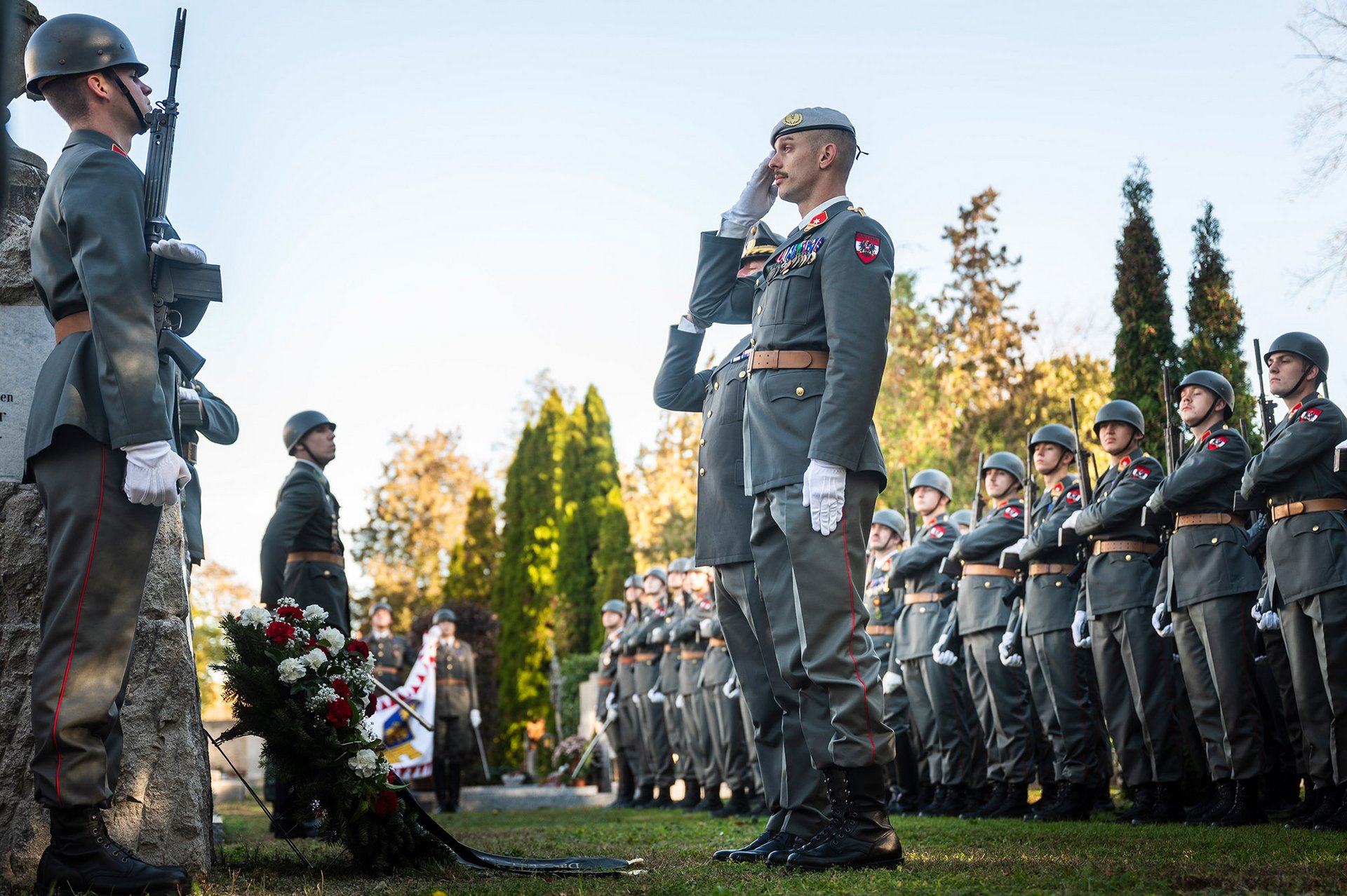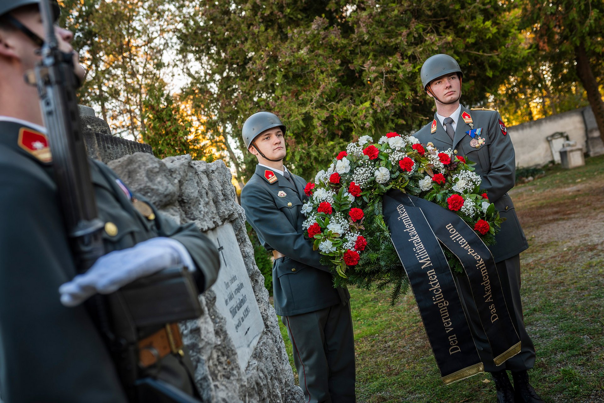 Am Akademiefriedhof wurde am Gedenkstein für die tödlich verunglückten Militärakademiker durch den Kommandanten des Akademikerbataillons ein Kranz niedergelegt.