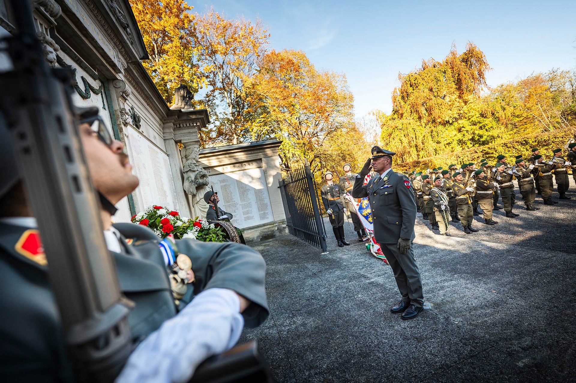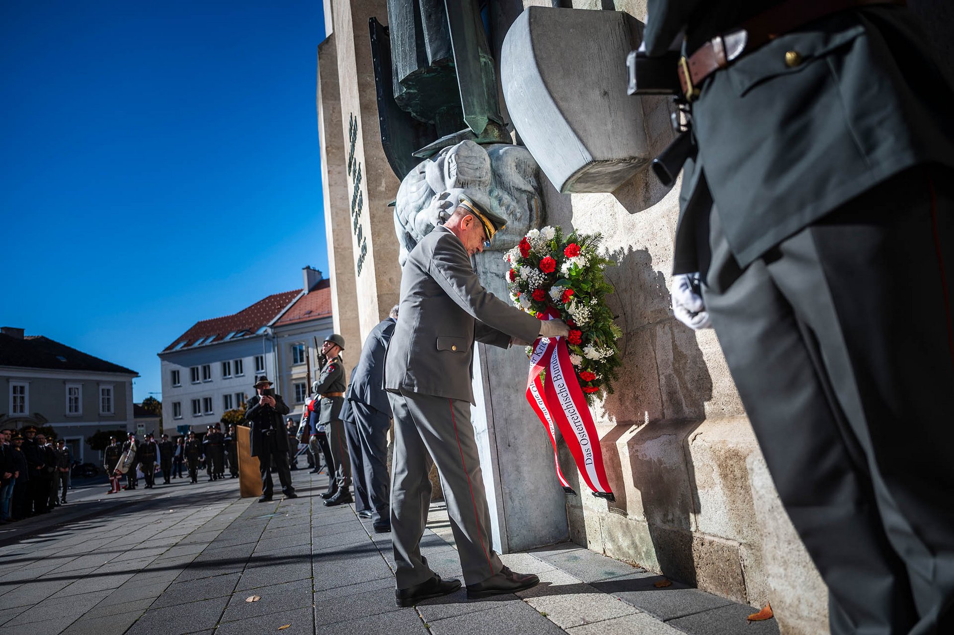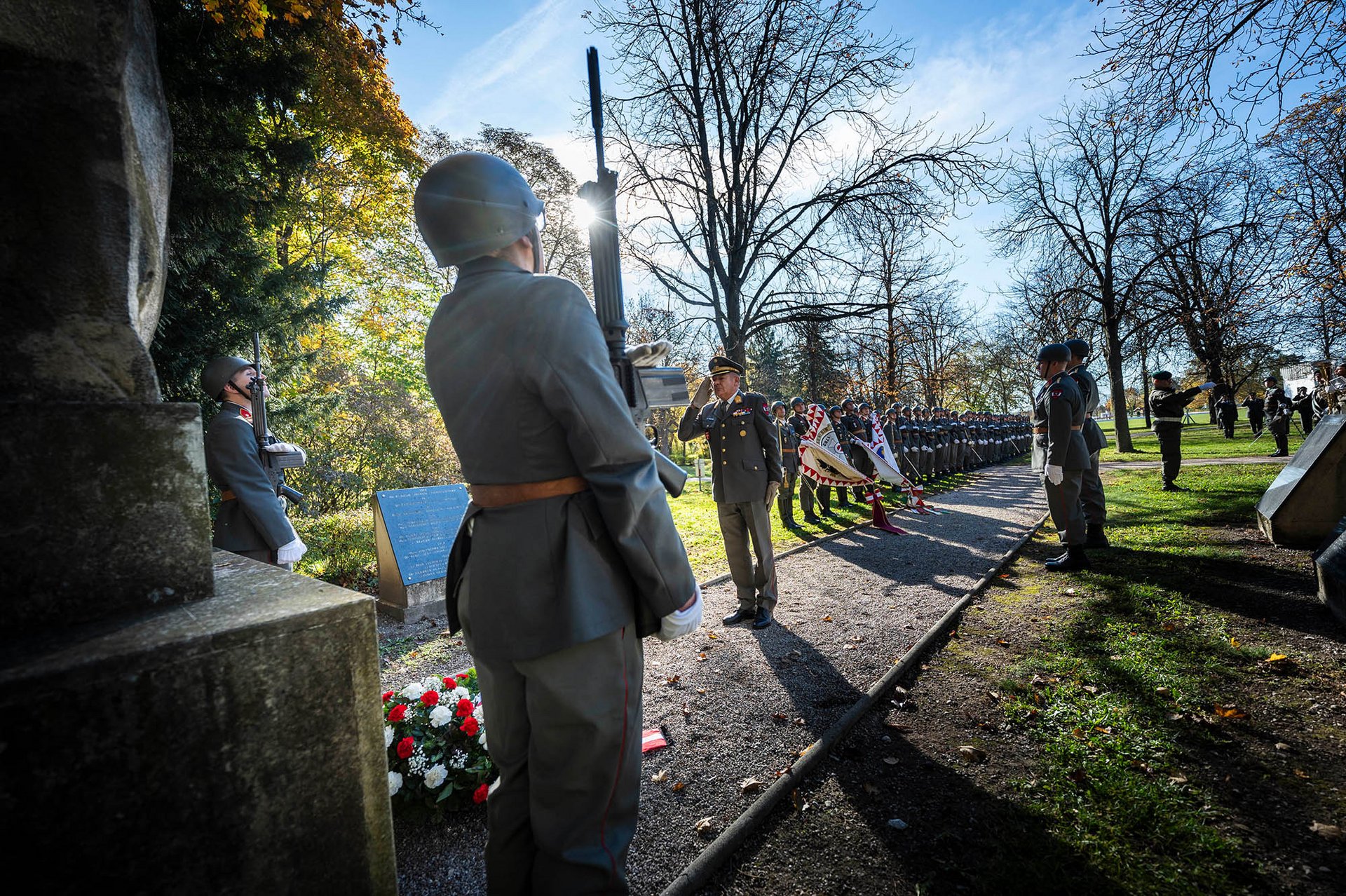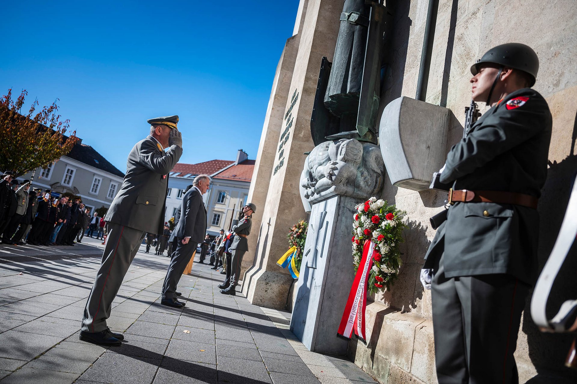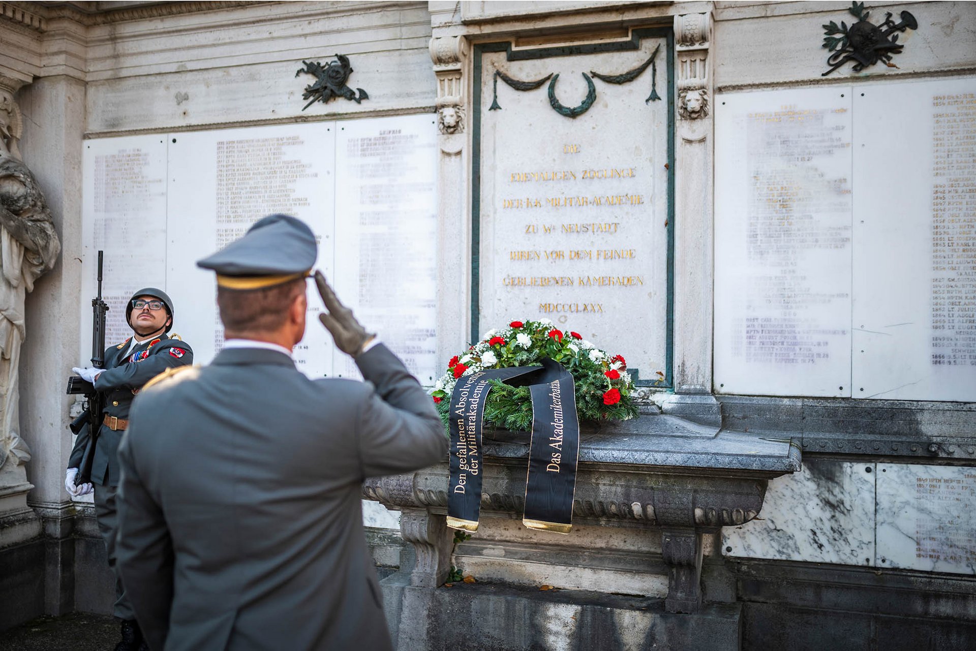 Die militärische Allerseelenfeier der Garnison Wiener Neustadt fand am Denkmal am Domplatz statt. Neben der Ehrenformation waren auch Abordnungen der einzelnen Organisationselemente der Militärakademie, der anderen Dienststellen der Garnison sowie des privilegierten uniformierten Bürgerkorps angetreten. Vertreter der Behörden, der Stadtverwaltung und der Einsatzorganisationen sowie ehemalige Angehörige der Militärakademie waren Gäste des Festaktes. Der Garnisonskommandant und Kommandant der Militärakademie, Generalmajor Karl Pronhagl, Landtagsabgeordneter Franz Dinhobl als Vertreter des Bürgermeisters sowie Dr. Rudolf Rammel für den Österreichischen Kameradschaftsbund legten Kränze nieder und gedachten der Opfer der Kriege.