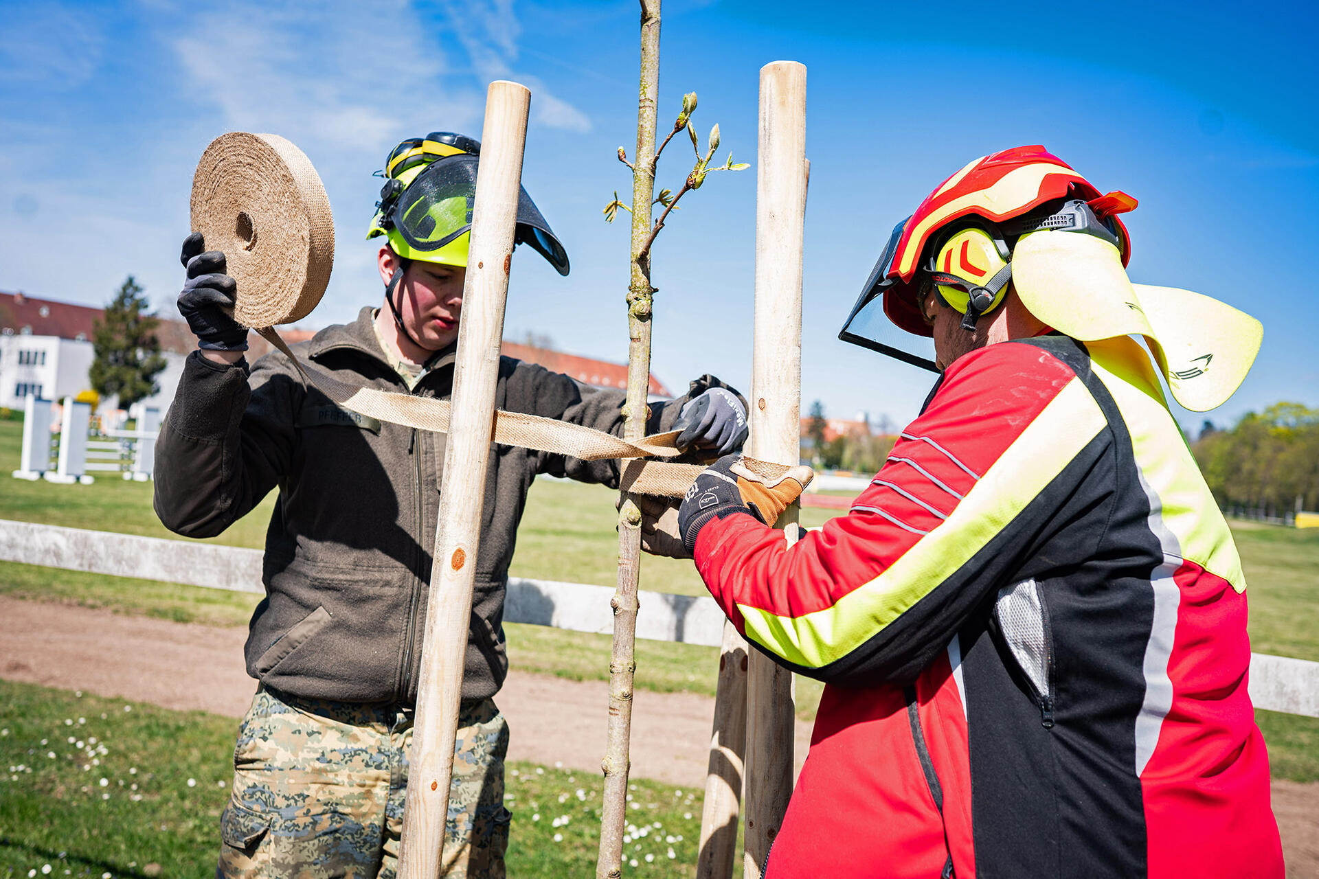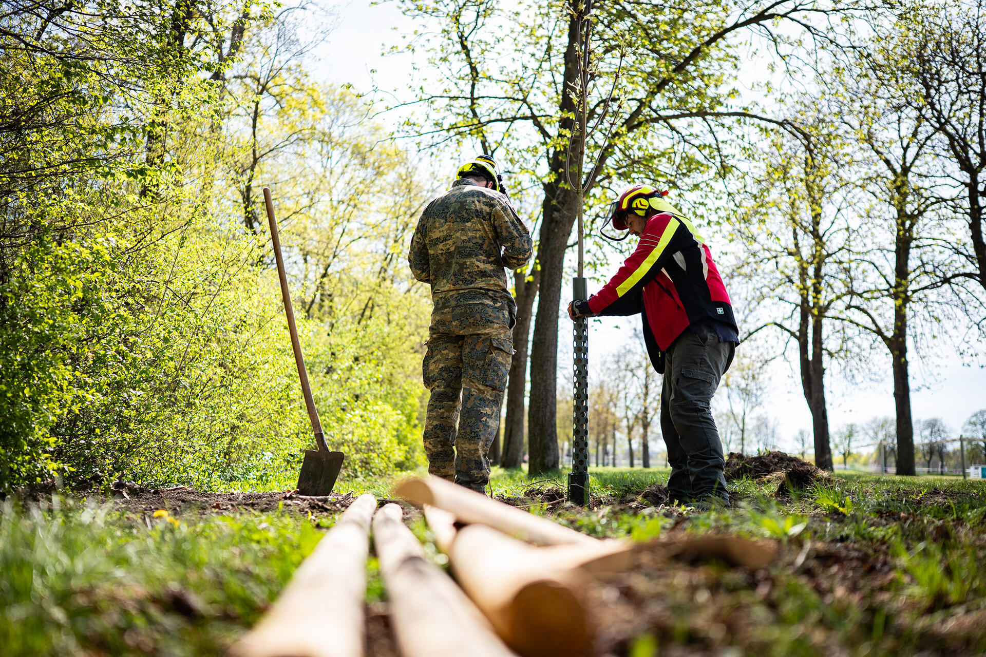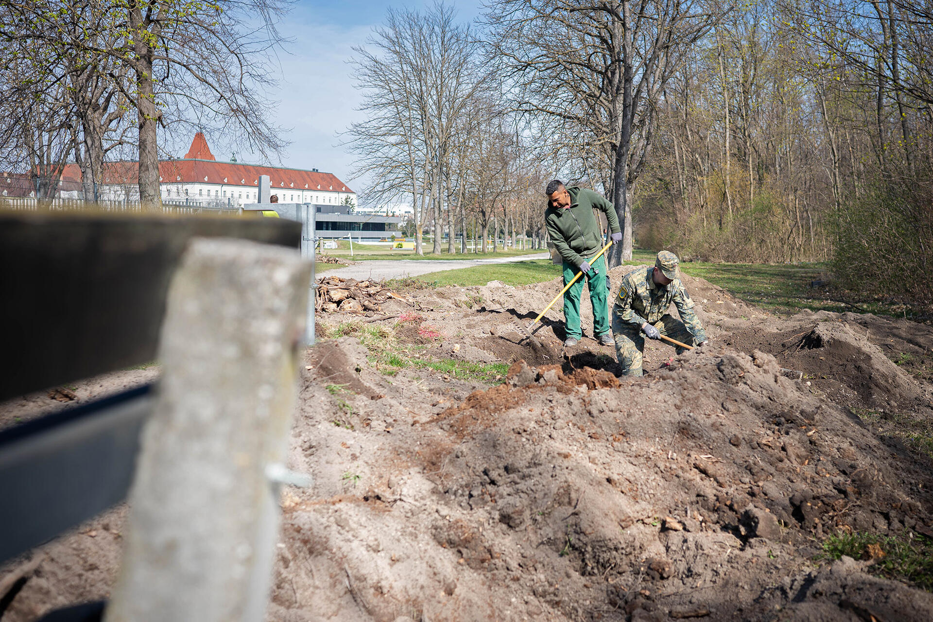 In den letzten Jahren mussten im Akademiepark auf Grund Überalterung oder Schädlingsbefall immer wieder Alleebäume gefällt werden. Nun wurde durch die Betriebsstaffel Burg mit Unterstützung durch den Gutshof der Wiener Neustädter Stadtwerke und Kommunal Service GmbH (WNSKS) eine Nachpflanzung durchgeführt. Dabei wurden zunächst die alten Wurzelstöcke entfernt. Dies erfolgte nicht durch Wurzelfräsen, sondern durch Ausgraben. Mit dieser Methode werden nämlich die alten Wurzelstöcke und darin lebende Schädlinge restlos entfernt, gleichzeitig wird der Boden aufgelockert und so beste Voraussetzung für die Nachpflanzung geschaffen.