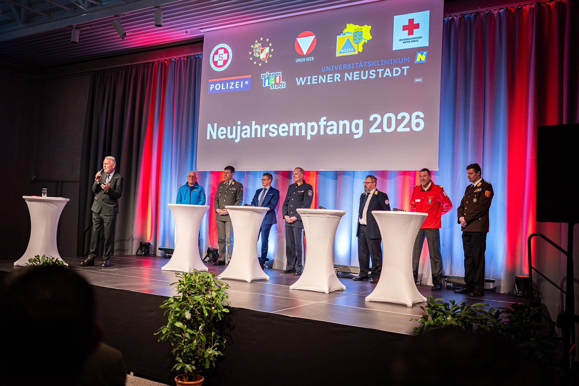 Den Einstieg in die Veranstaltung bildete ein filmischer Rückblick darauf, was sich im Jahr 2025 im Bereich der Einsatzorganisationen der Statutarstadt Wiener Neustadt alles getan hat.