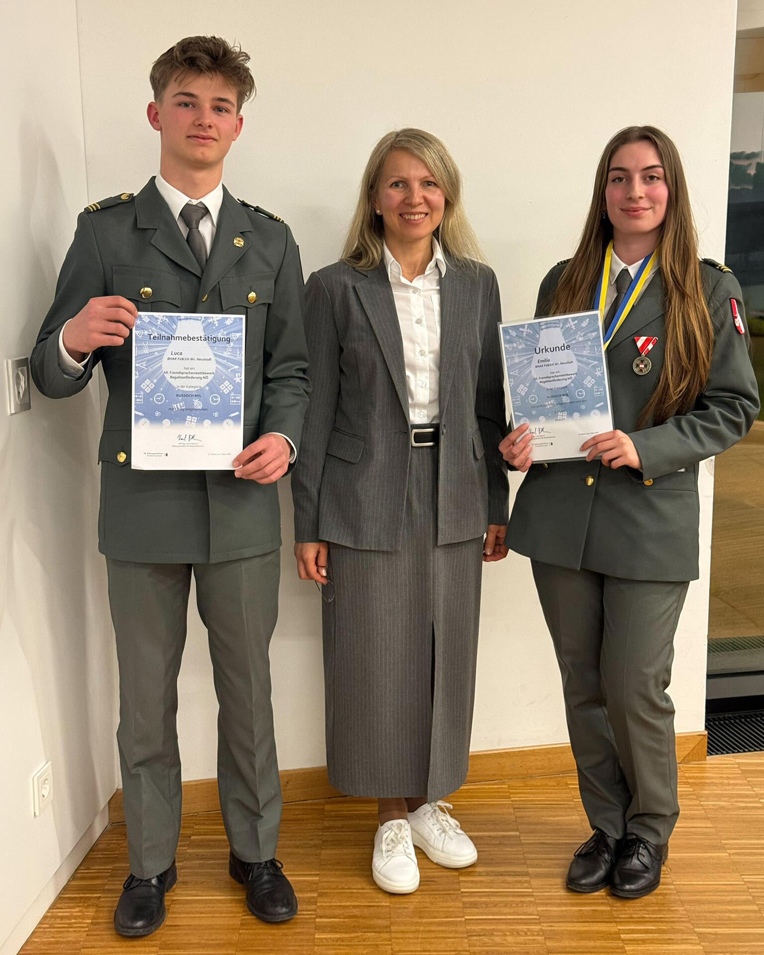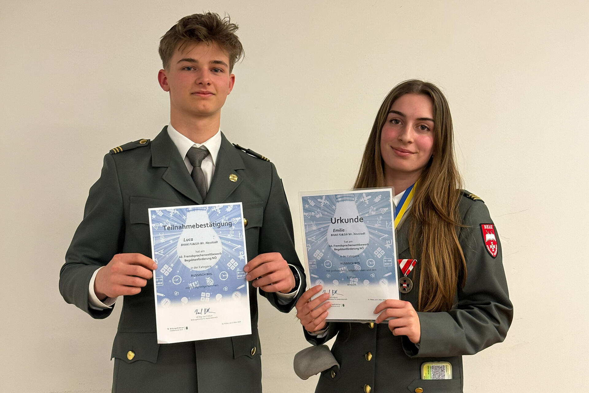 Am Donnerstag, dem 5. März 2026, nahmen zwei unserer Schüler - Luca U. und Emilia M. (beide 3AK) - am 40. Niederösterreichischen Fremdsprachenwettbewerb in der Kategorie Russisch/BHS teil und schafften den dritten Platz. Emilia M. berichtet: