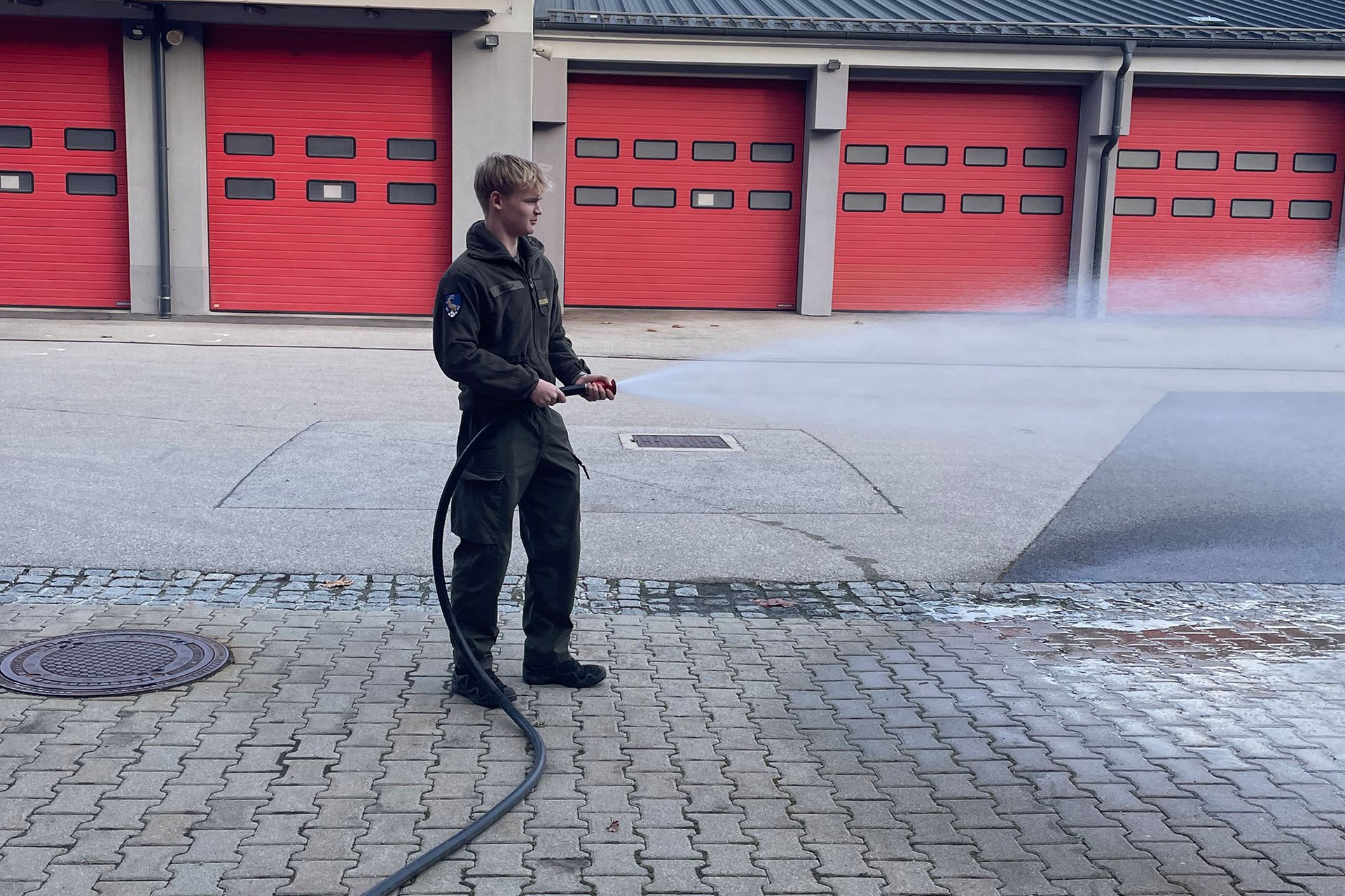 In der praktischen Übung durften wir selbständig einen Feuerlöscher betätigen sowie einen Wandhydranten bedienen, um das Gelernte direkt anzuwenden.