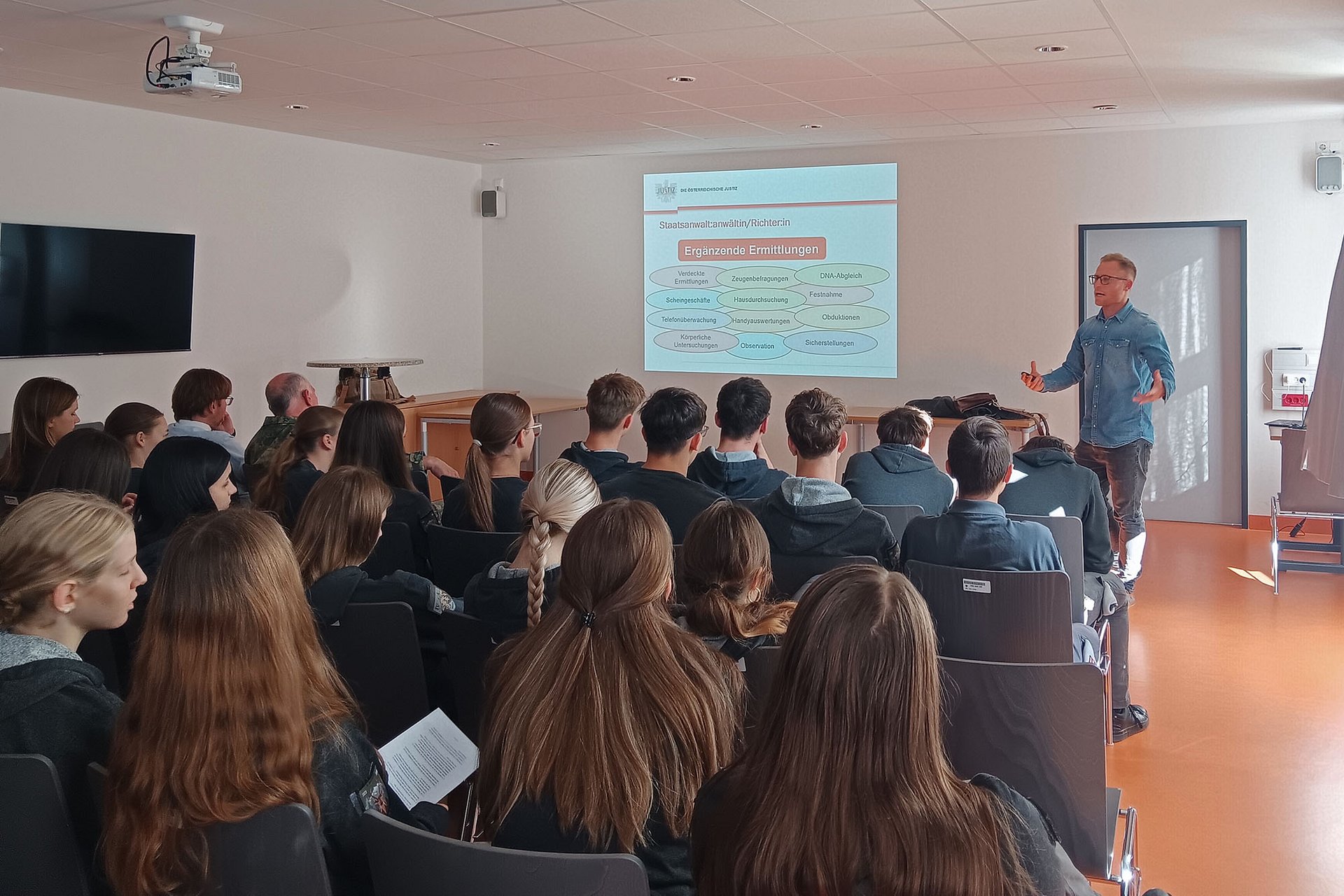 Der zweistündige Vortrag, der im Rahmen des Schulschwerpunkts „Führung und Sicherheit“ stattfand, begann mit einer verständlichen Erklärung der Grundprinzipien und des Aufbaus des österreichischen Rechtsstaates. Der Staatsanwalt erklärte die verschiedenen Säulen des Rechtssystems: Legislative, Exekutive und Judikative und ging dabei besonders auf die Aufgaben der Justiz ein. Anschließend erläuterte er die Rolle der Staatsanwaltschaft: von der Einleitung eines Strafverfahrens über die Ermittlungen bis hin zur Anklage und zur Zusammenarbeit mit Polizei und Gerichten.