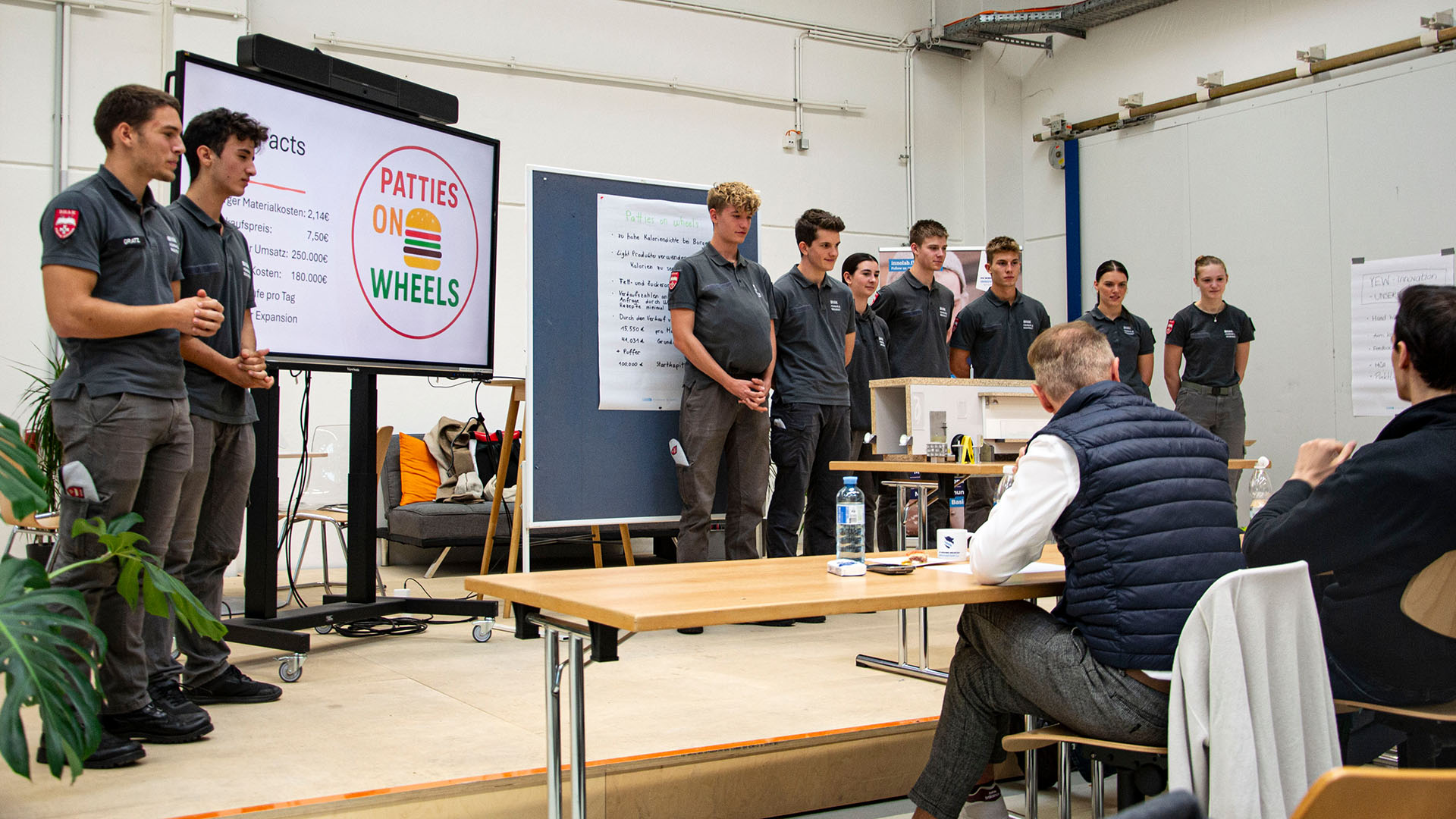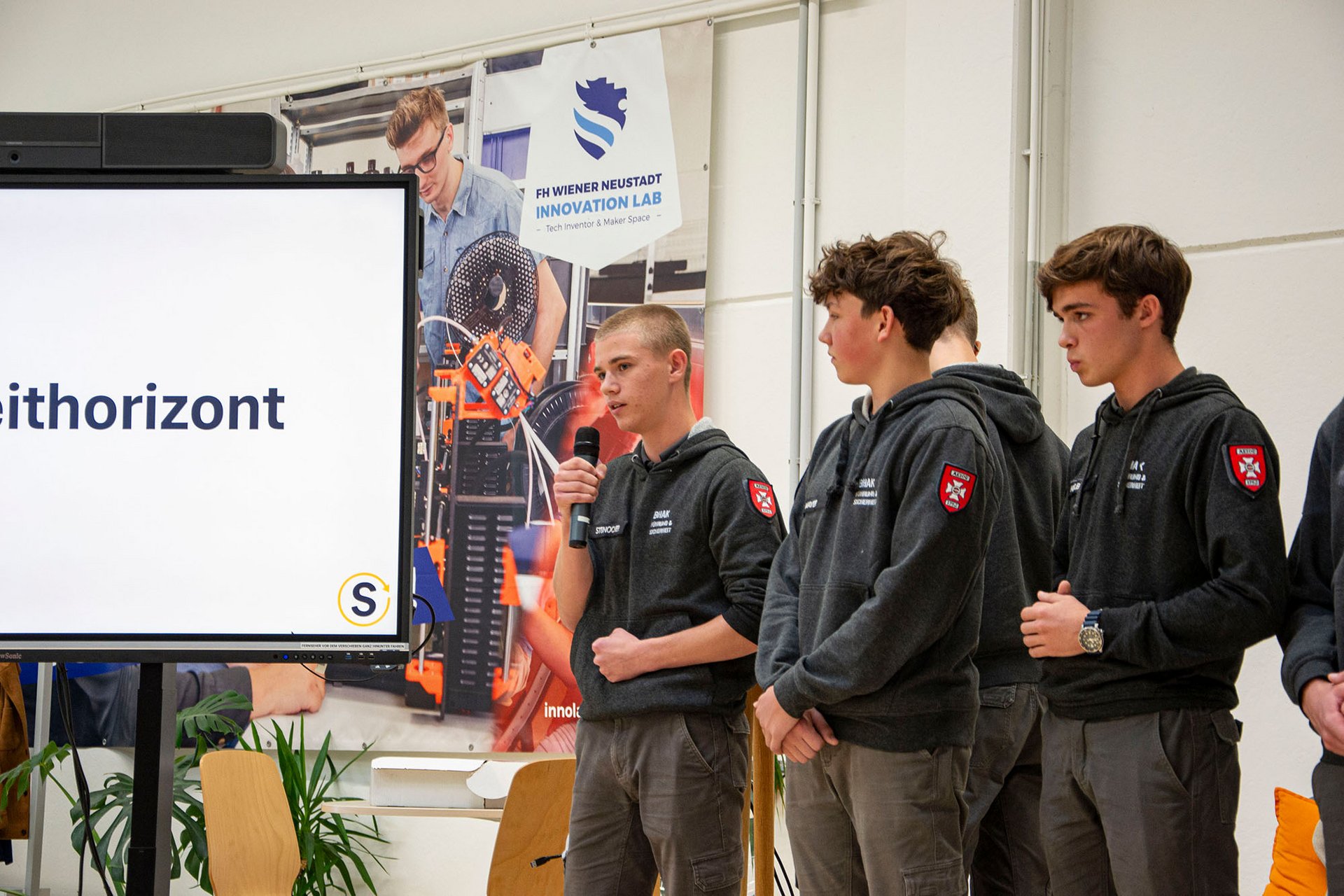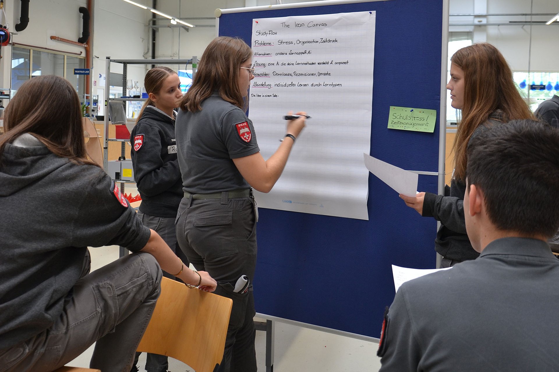 Am letzten Tag fanden die sogenannten Pitches statt, bei denen die Teams in wenigen Minuten ihre Lösung und Unternehmensidee einer Jury vorstellen musste. Die Jury bestand aus fünf Unternehmern, welche am Ende zusammen den Gewinner krönten. Gewonnen hat das Team „Mamakompass“ bestehend aus den Kadetten Christina P., Naomi P., Zara B., Jana A. und unsererseits.