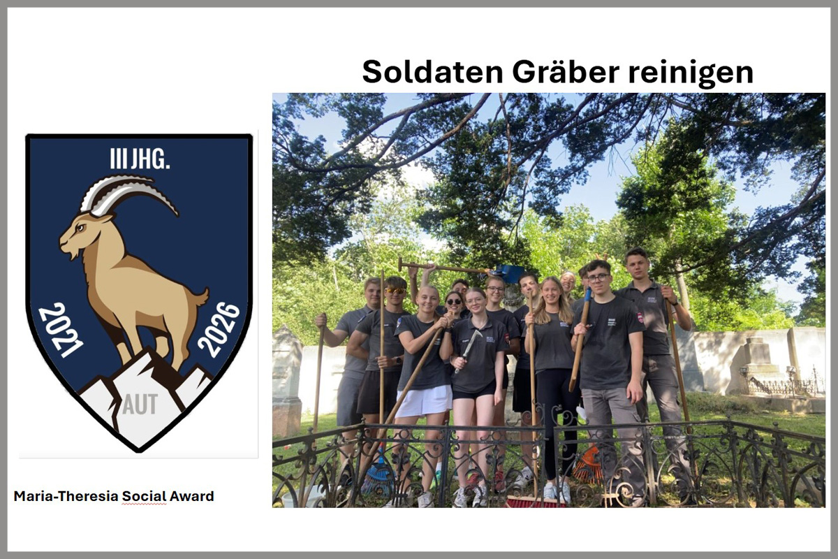 Die Schüler der 5. Klassen haben am Ende des letzten Schuljahres Hand angelegt und am Akademiefriedhof Gräber gesäubert und instandgesetzt. Dafür gab es jetzt die Auszeichnung mit dem Maria Theresia Social Award des Elternvereins.